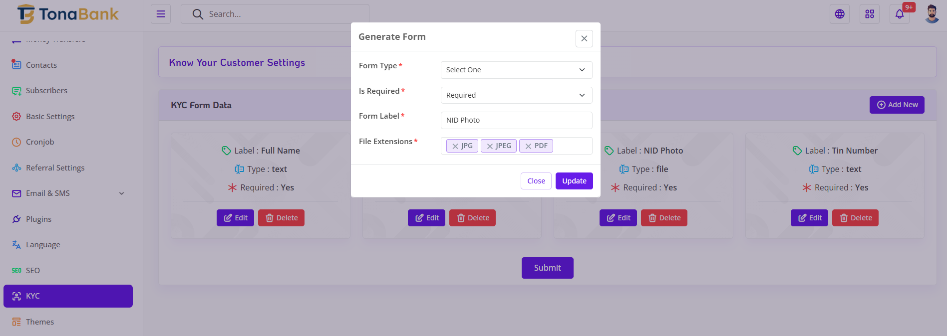 Admins can create a tailored set of questions to extract specific information from users during the KYC process. -