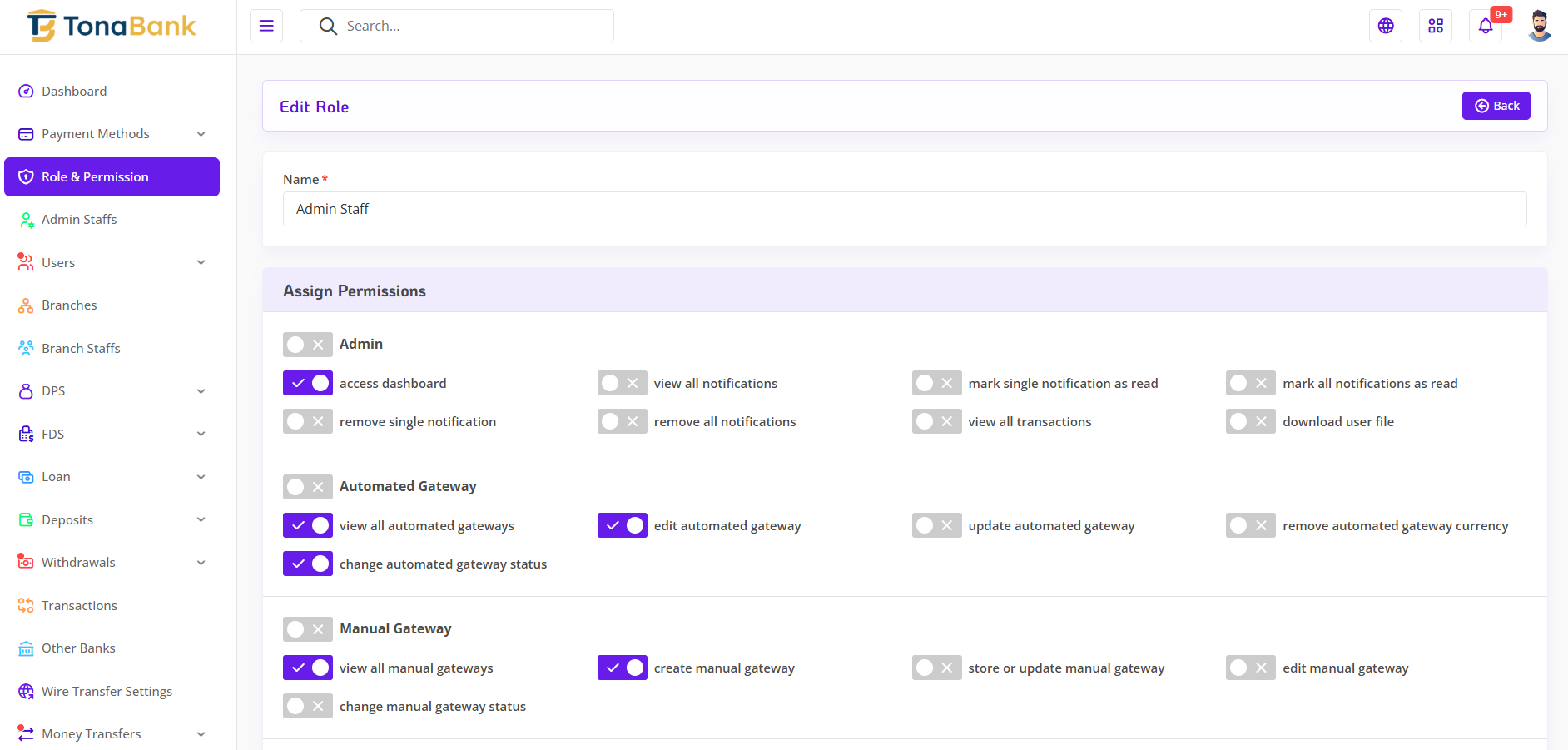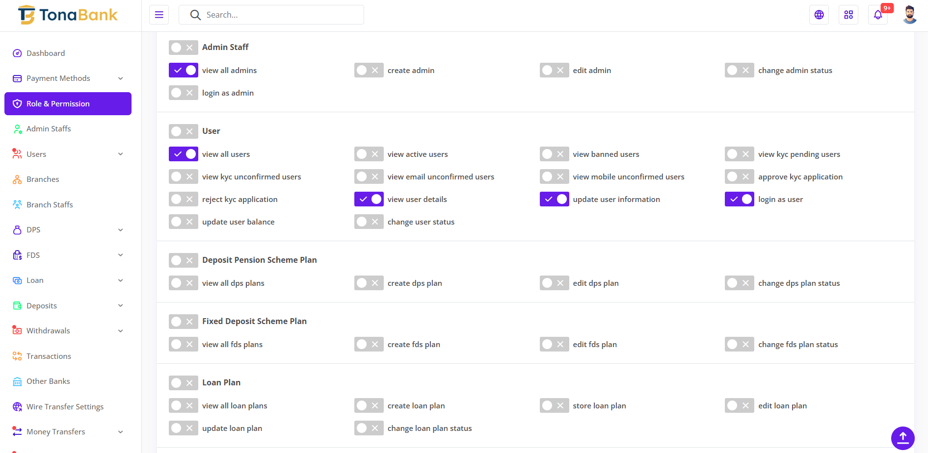 In TonaBank, the Manage Role and Permission system provides the Super Admin with full control over user access across the platform. This system ensures that staff members only have access to the features they need, improving both security and efficiency. By setting up roles and assigning permissions, the Super Admin can organize staff responsibilities and maintain a smooth workflow within the application.