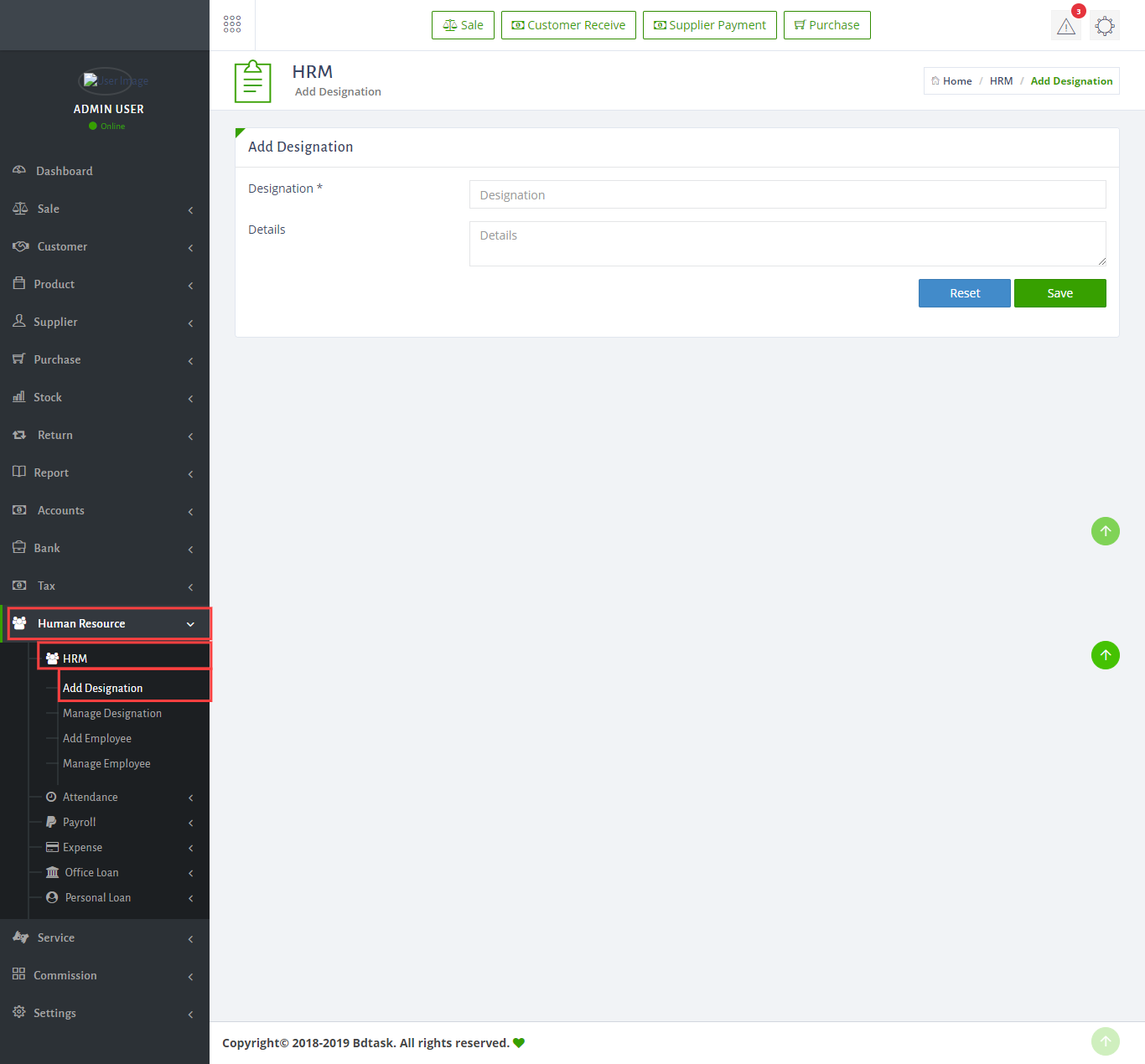 - To add a new designation just go to Human Resources > HRM > Add Designation