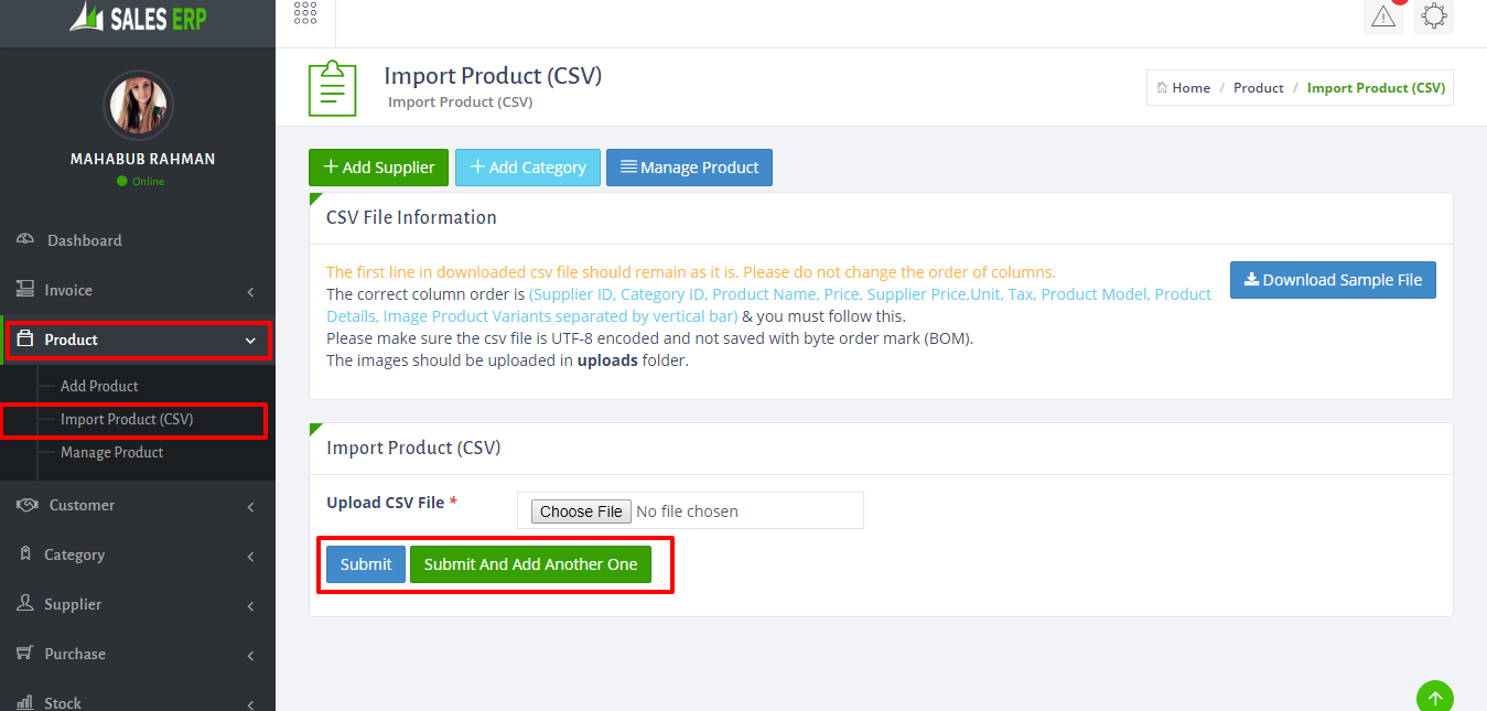 - To add category just go to Product > Category > Add Category. fill up information then click save button. You can also upload CSV file of category list