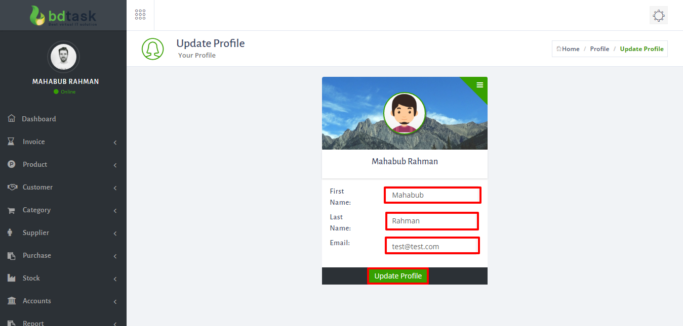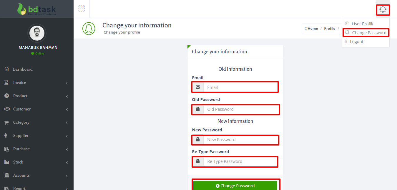 - To change profile setting just follow Settings icon right side of dashboard and click User Profile.