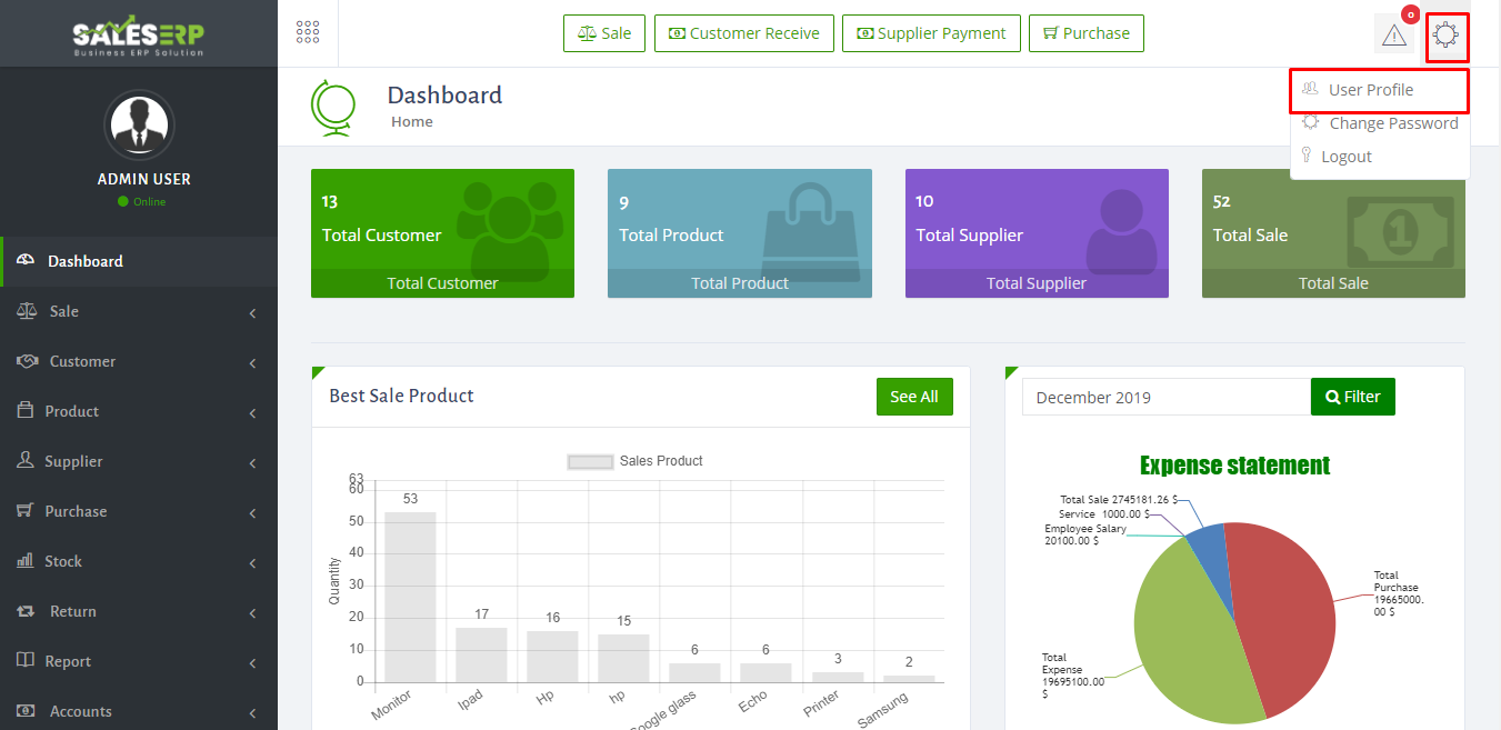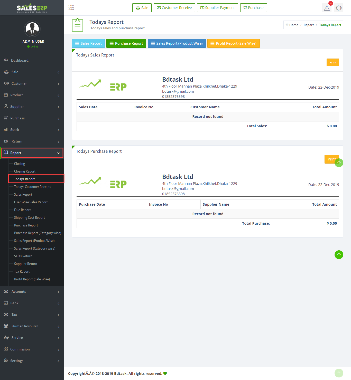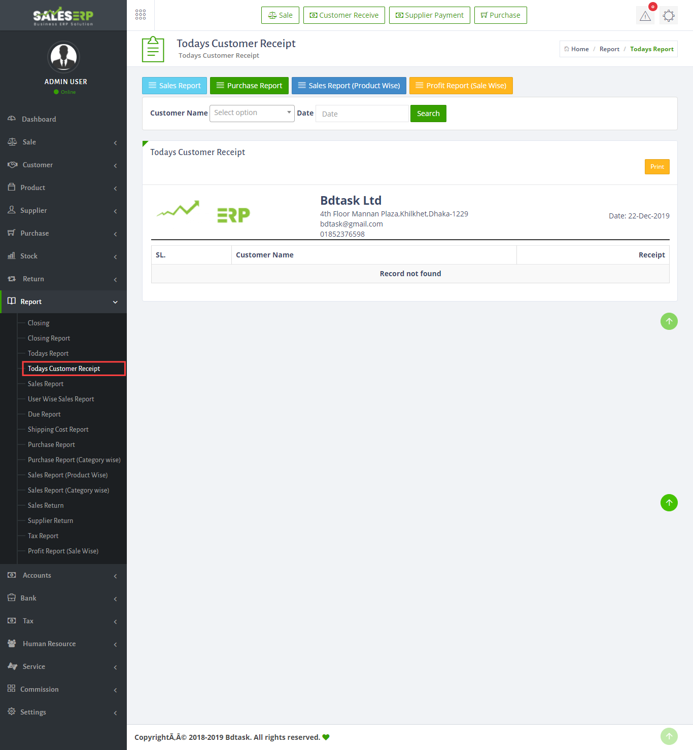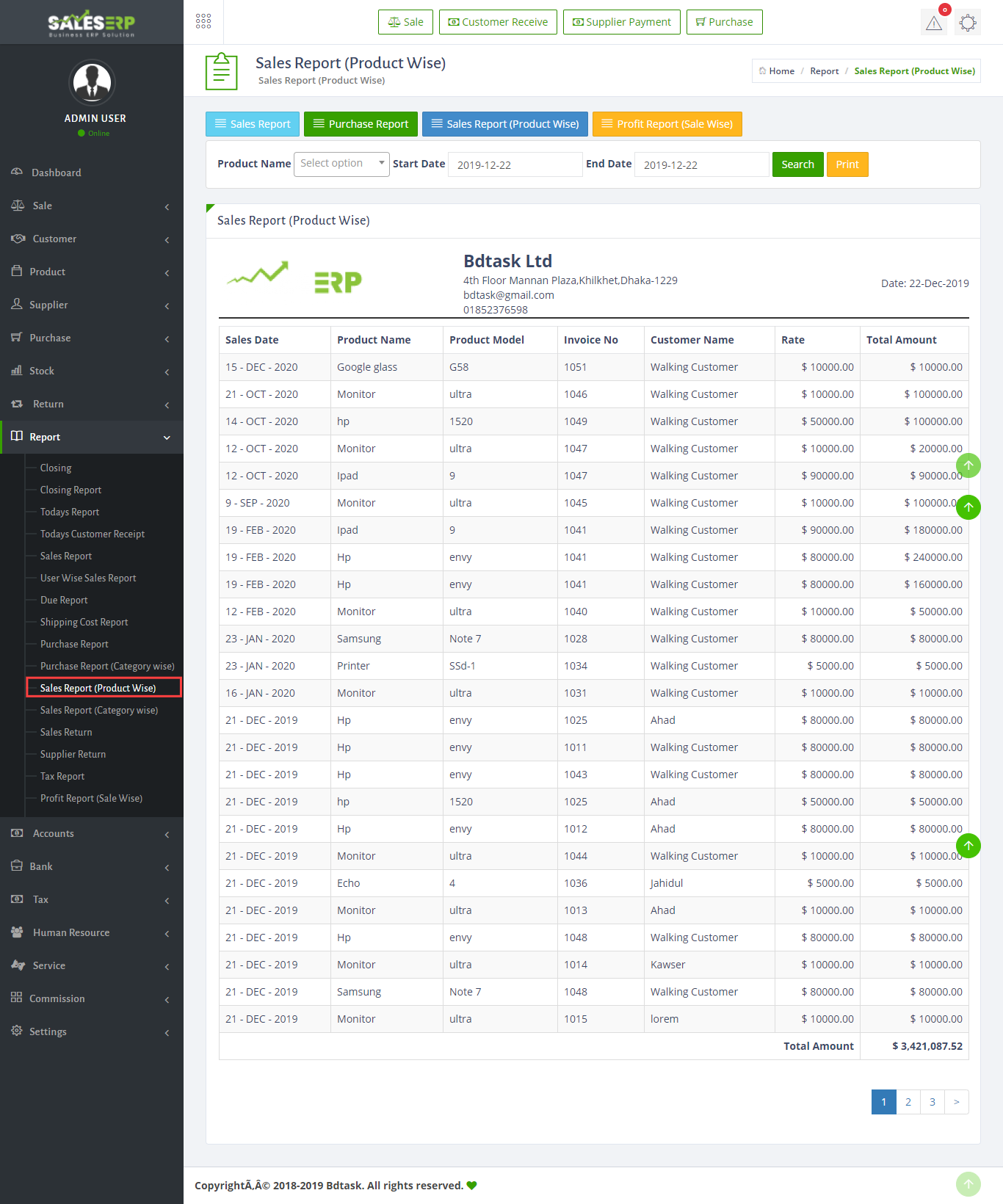 ERP Application is developed for based on all Business and product. You can see the sales report of everyday.