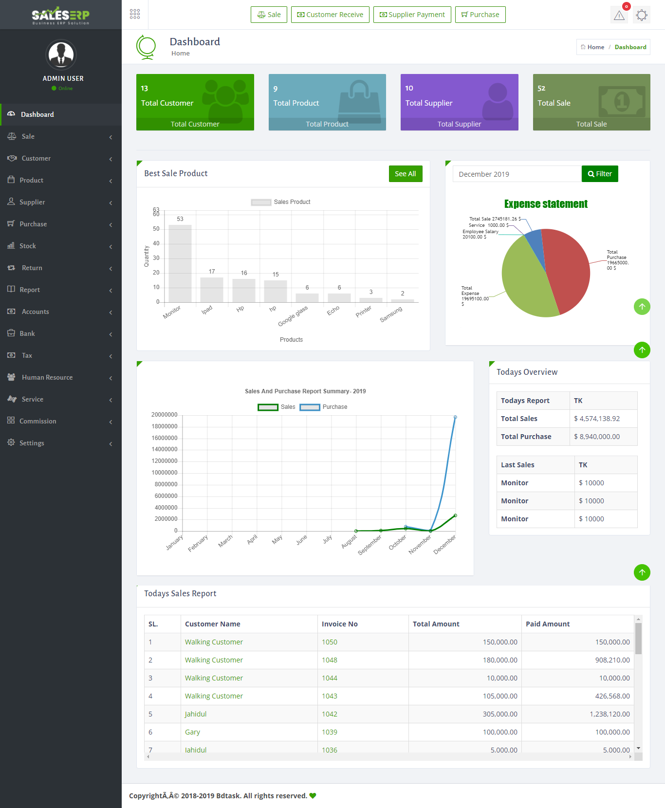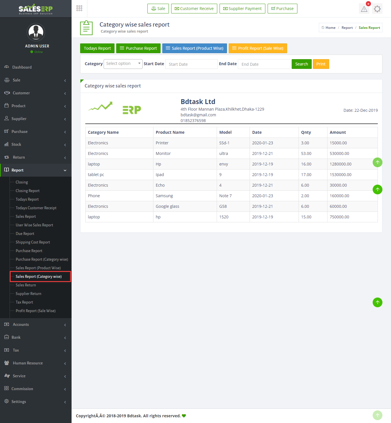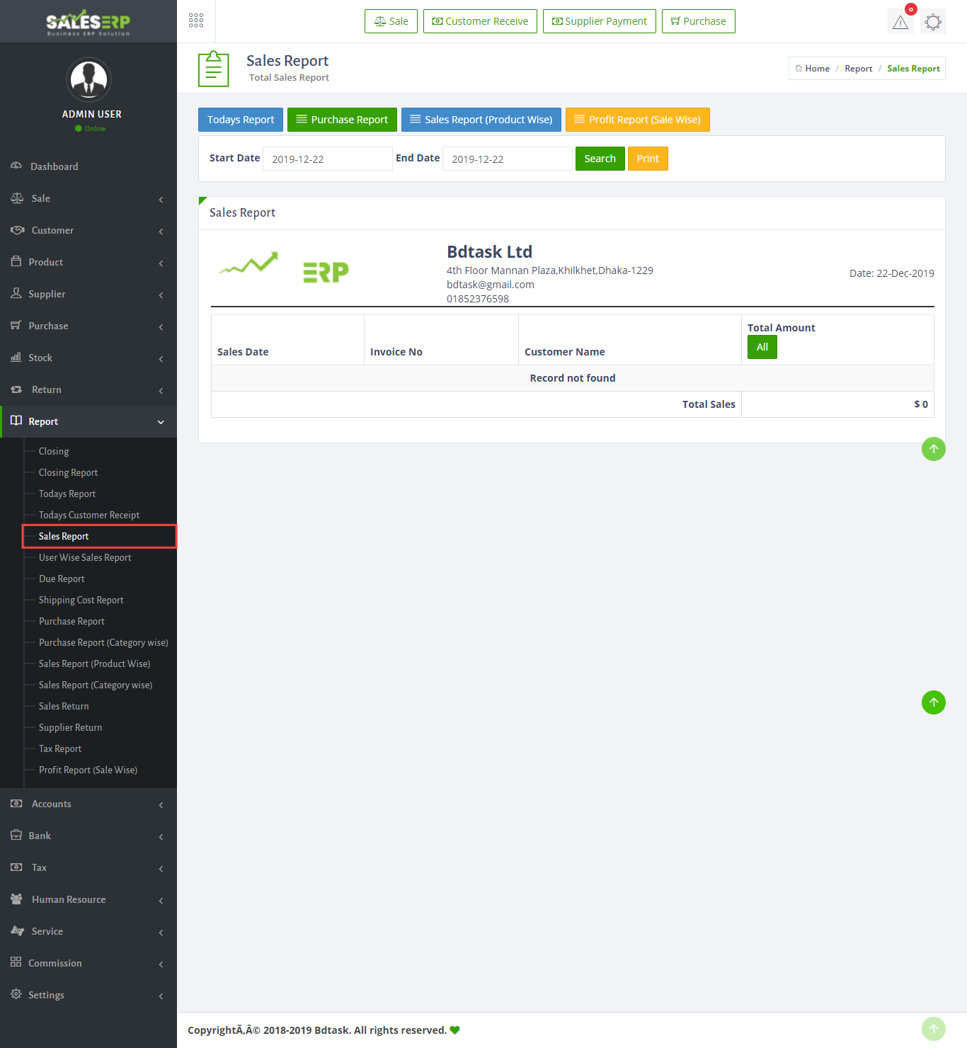 ERP Application is developed for based on all Business and product. You can see the sales report of everyday.