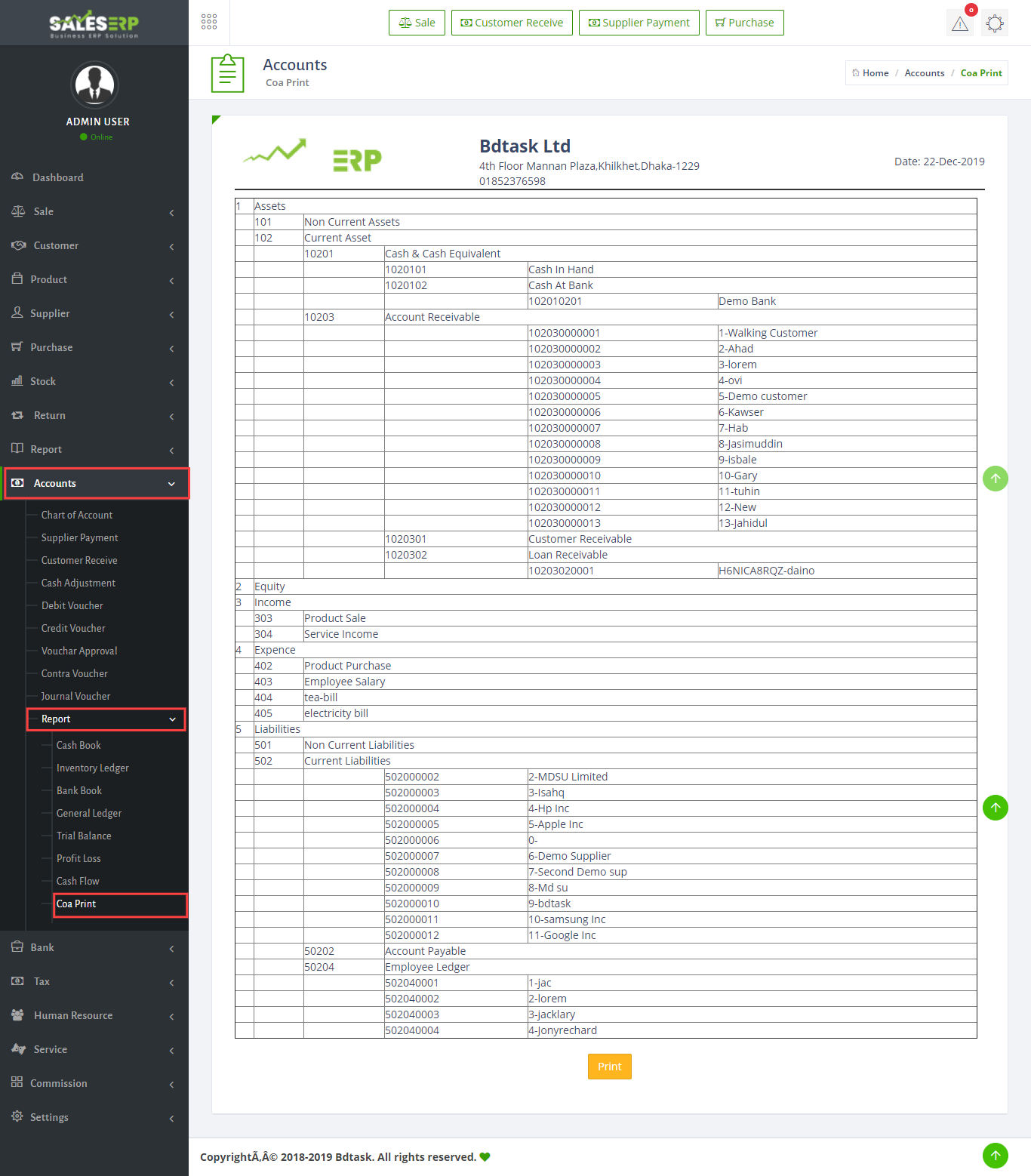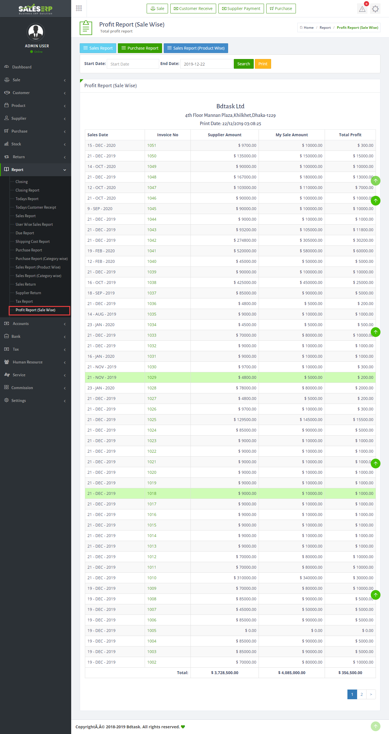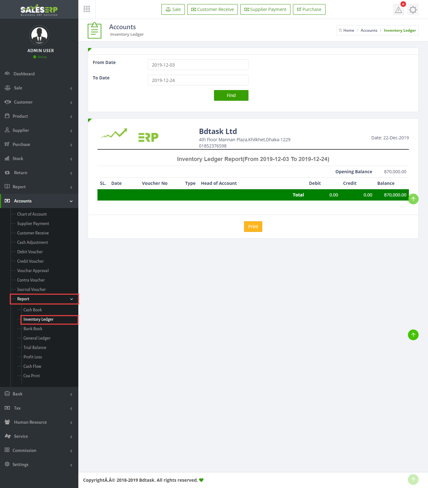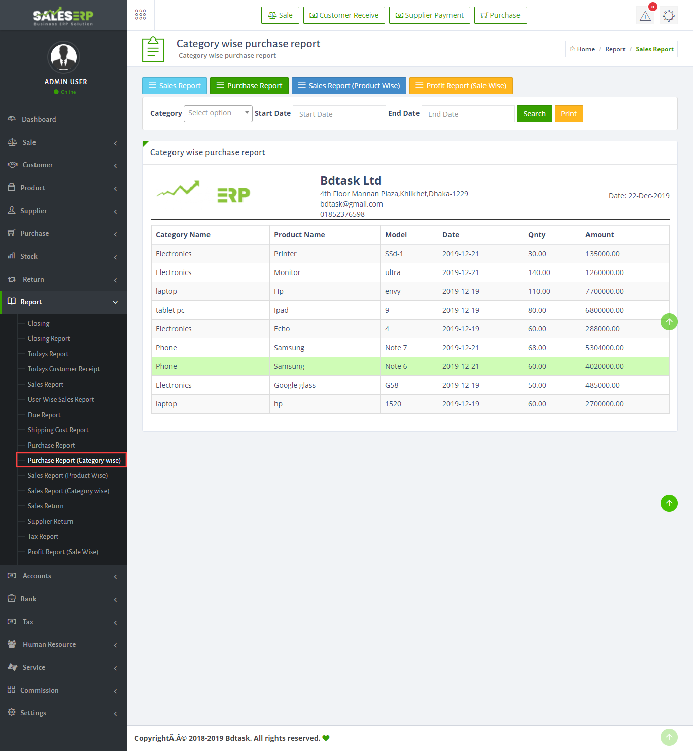 ERP Application is developed for based on all Business and product. You can see the sales report of everyday.