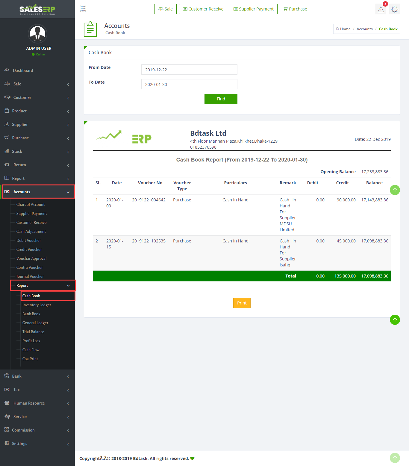 ERP Application is developed for based on all Business and product. You can see the Purchase report of everyday.
