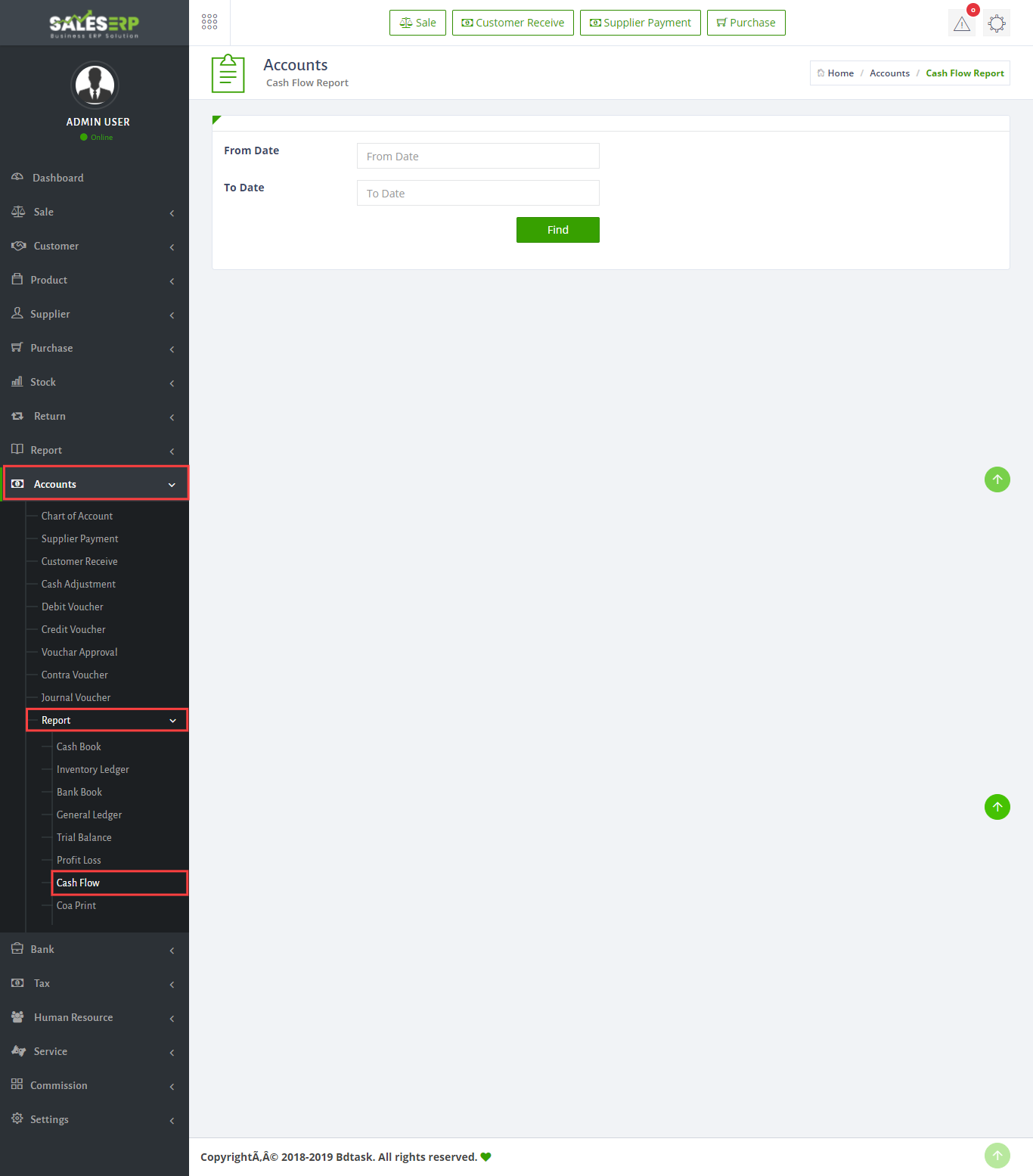 - To check cash flow report just go to Accounts > Reports > Cash Flow.