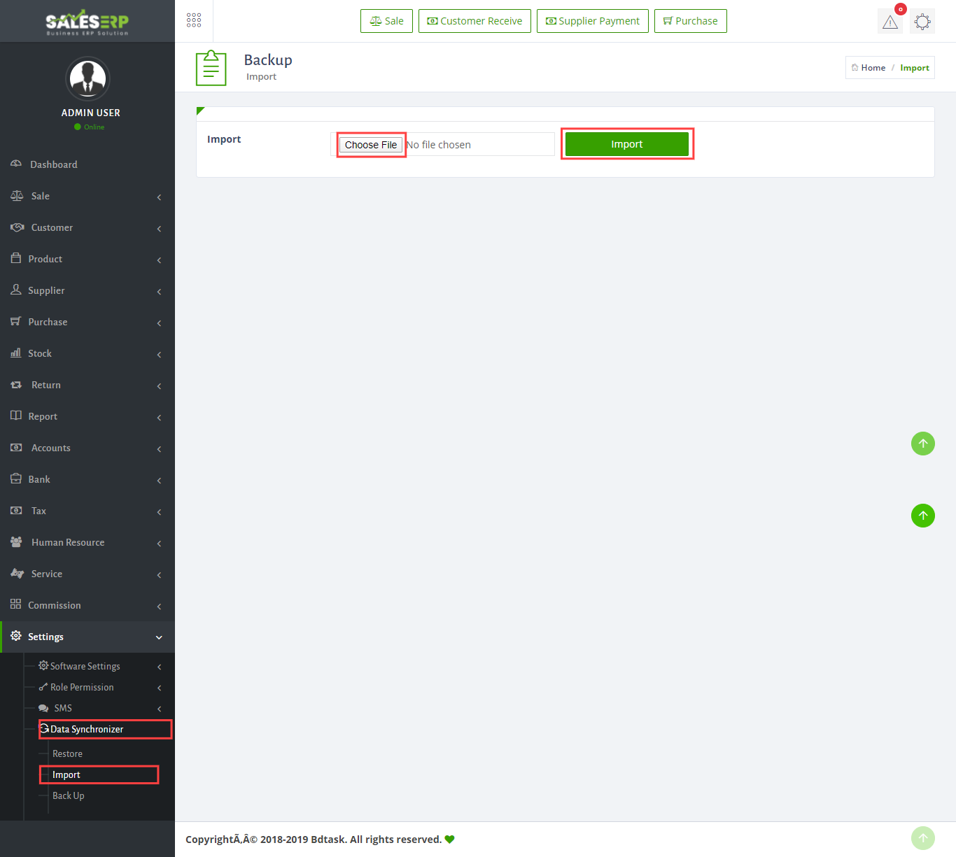 - Sale ERP has a very easy data Synchronization system. you can Restore your software to default. To do this just