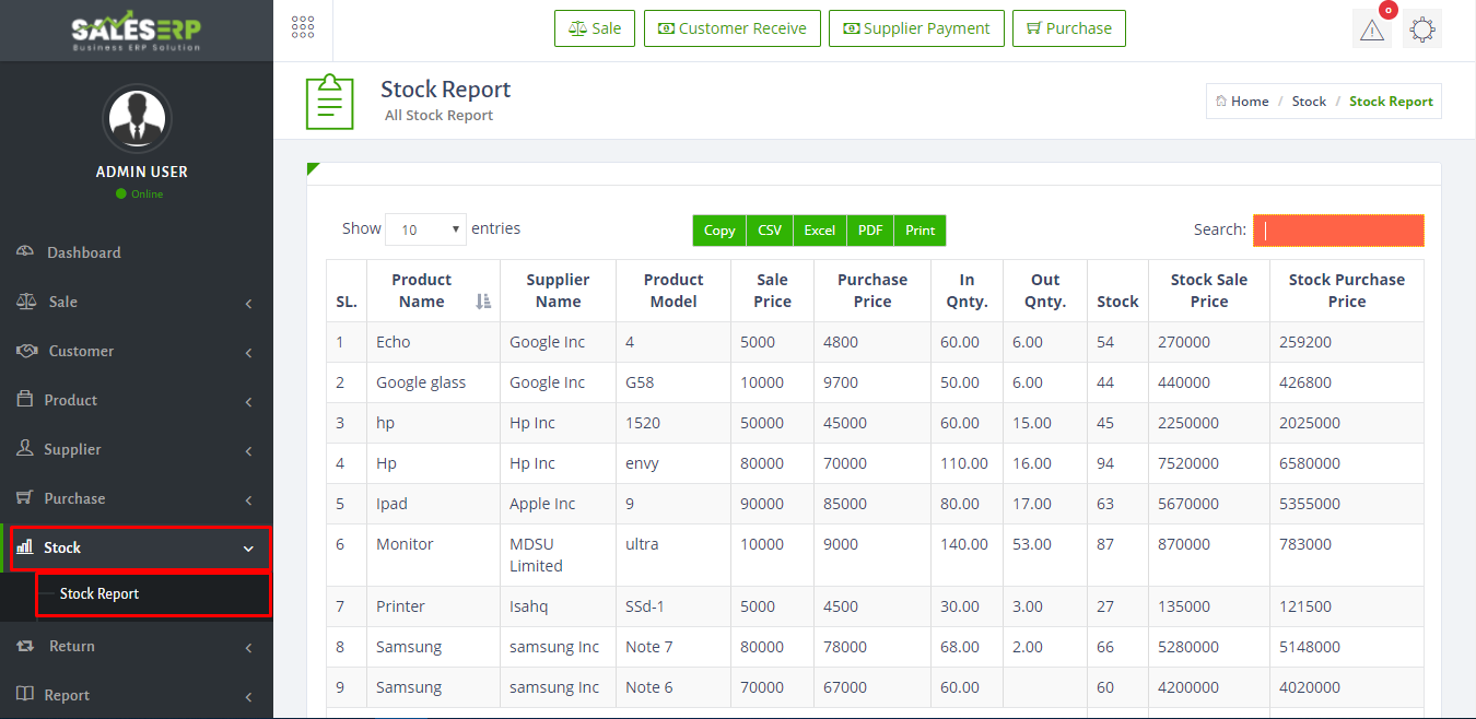Here have very wonderful stock management system, you can see the current condition of your business.