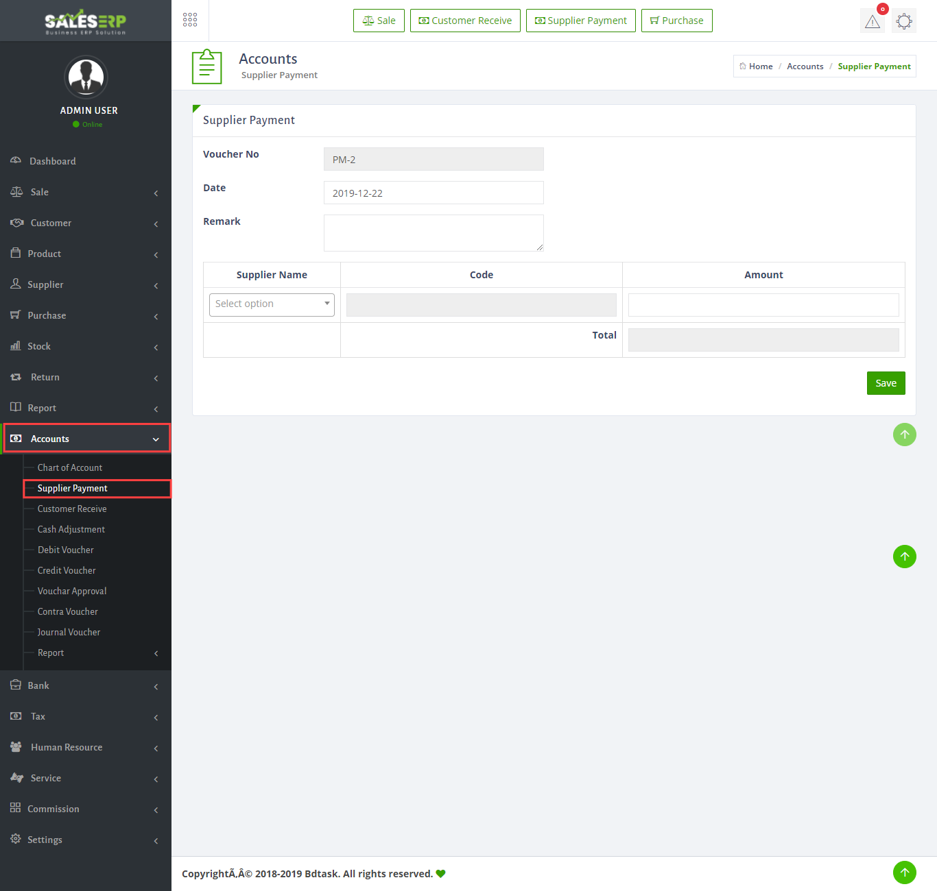 - To make payment for a Supplier just go to Accounts > Supplier Payment.