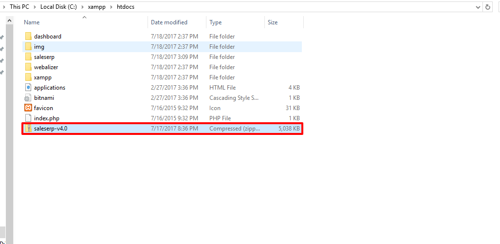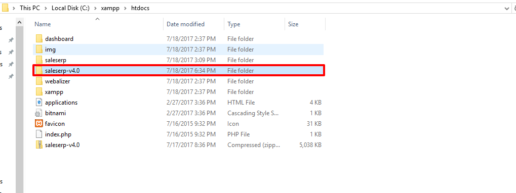 - Now open htdocs folder and put saleserp.zip file inside htdocs folder and extract zip folder.