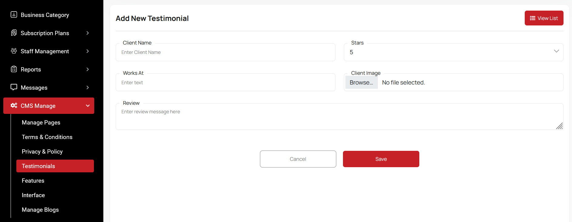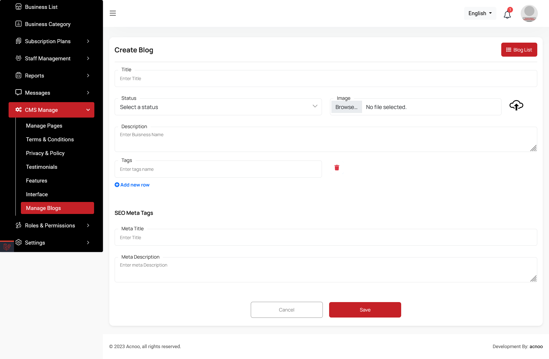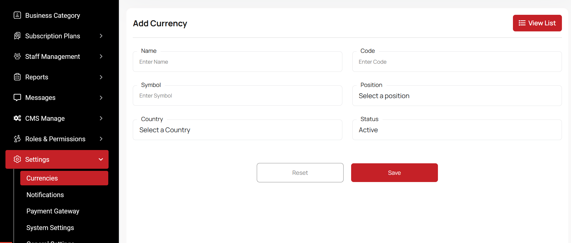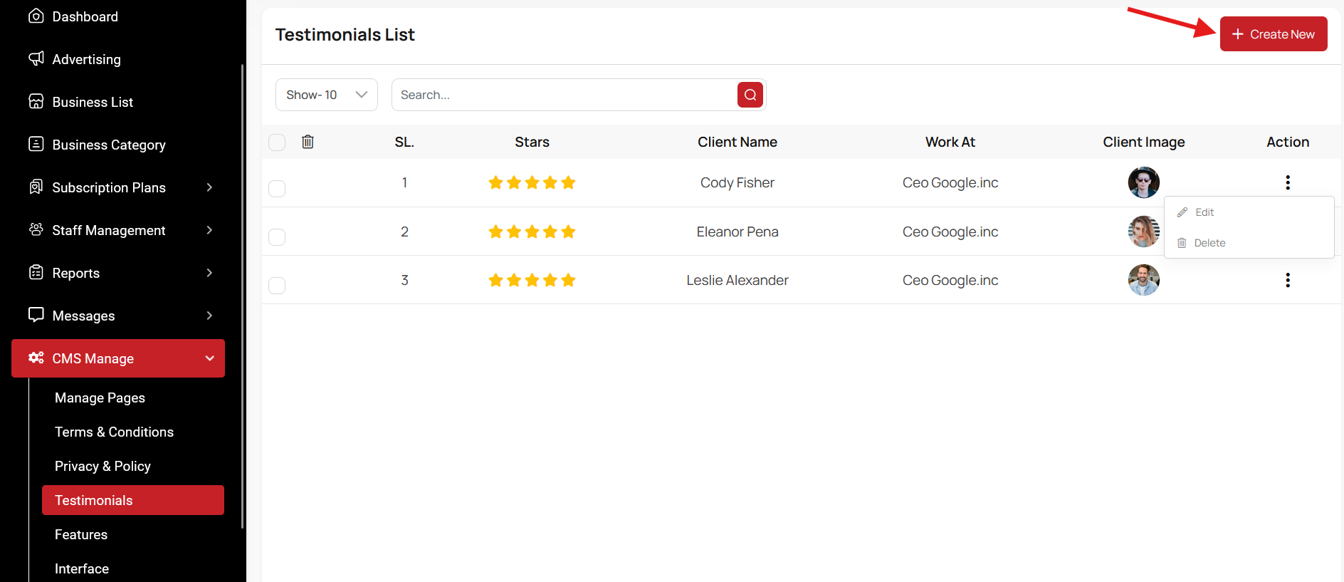 By clicking on the "Add New Business" button, you can create a new business. You will need to fill in the necessary fields. Here is the screenshot of the create business page.