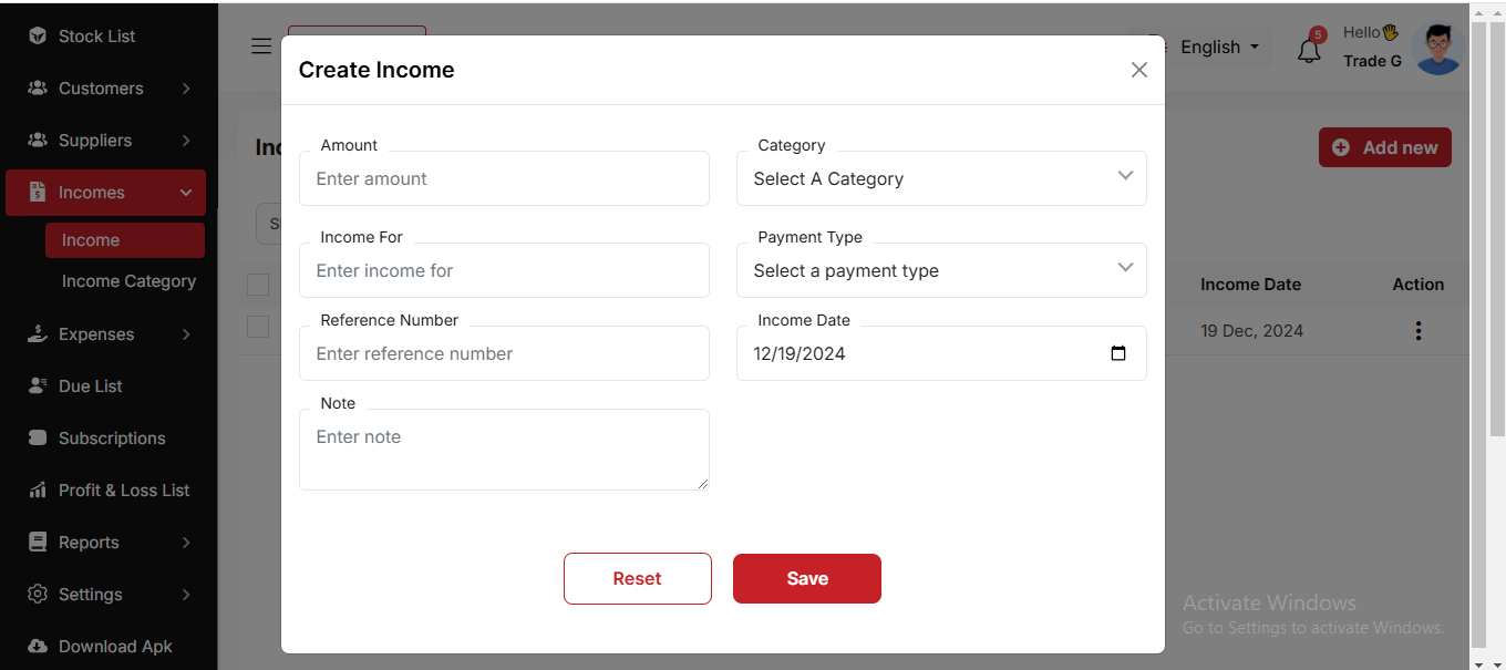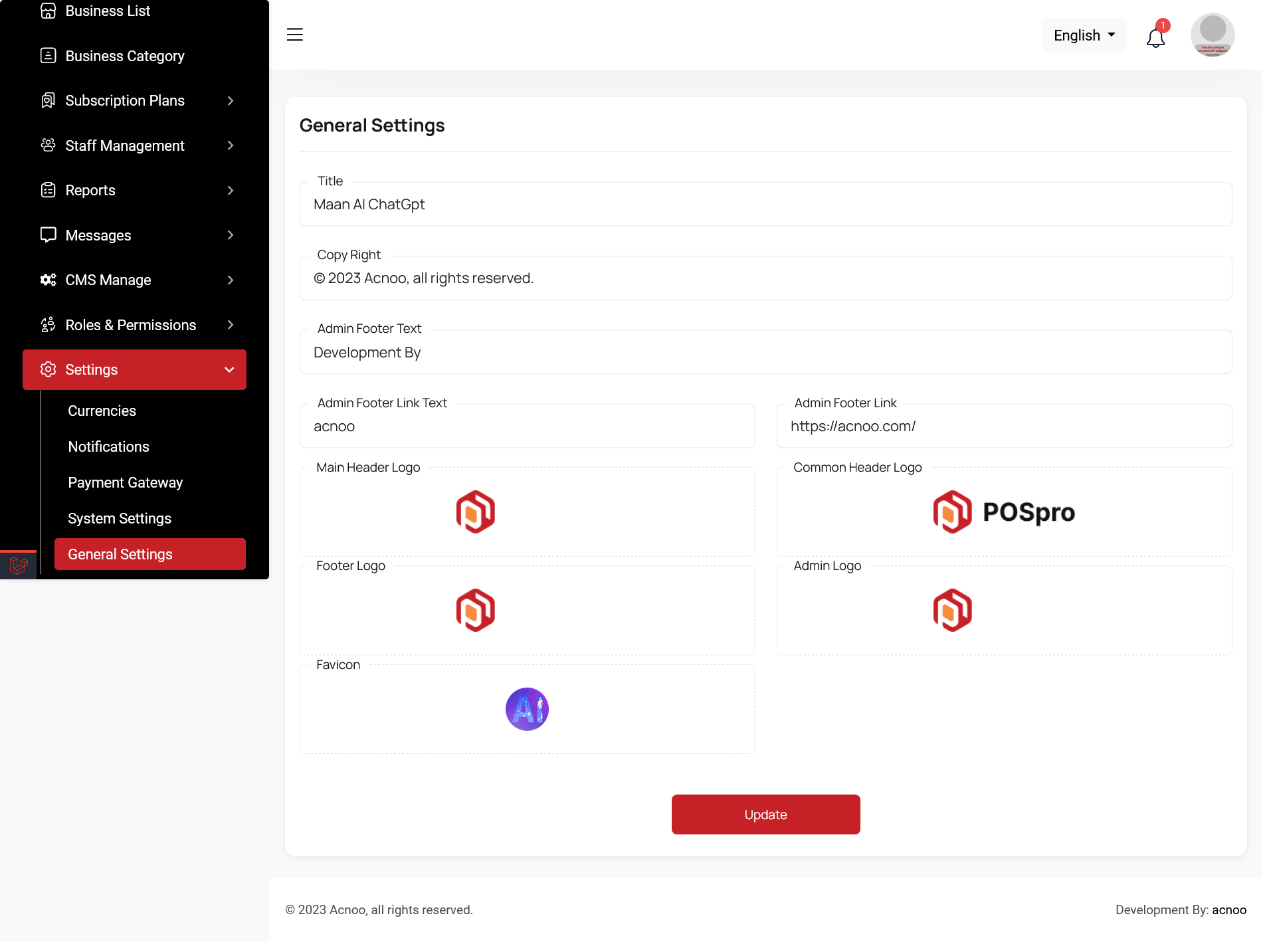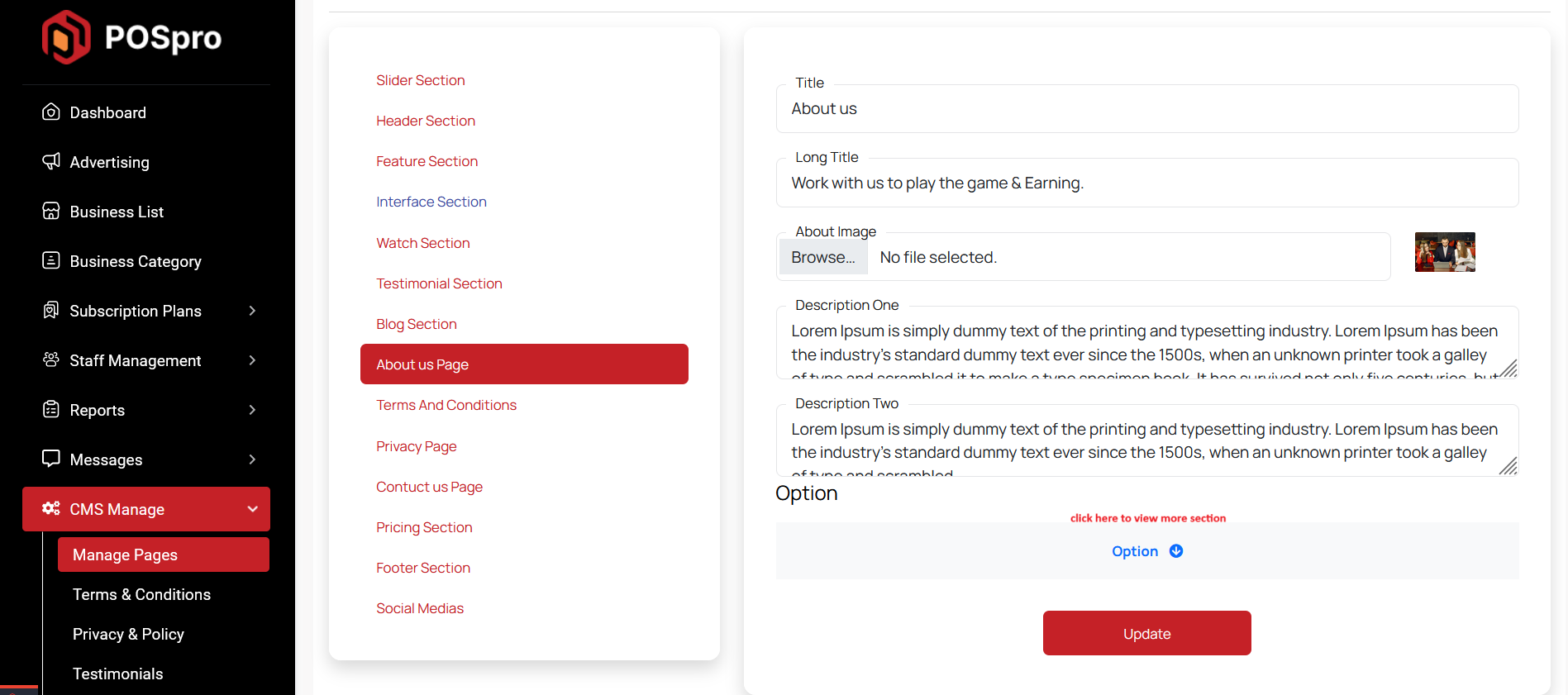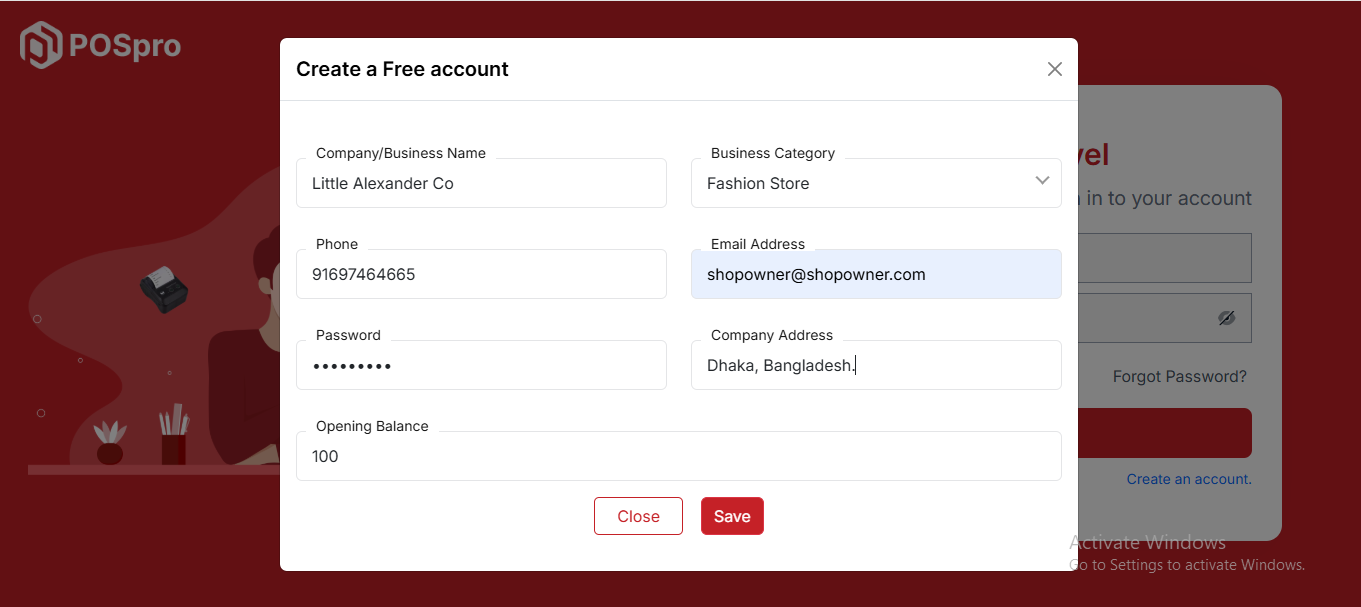 By clicking on the "Add New Business" button, you can create a new business. You will need to fill in the necessary fields. Here is the screenshot of the create business page.