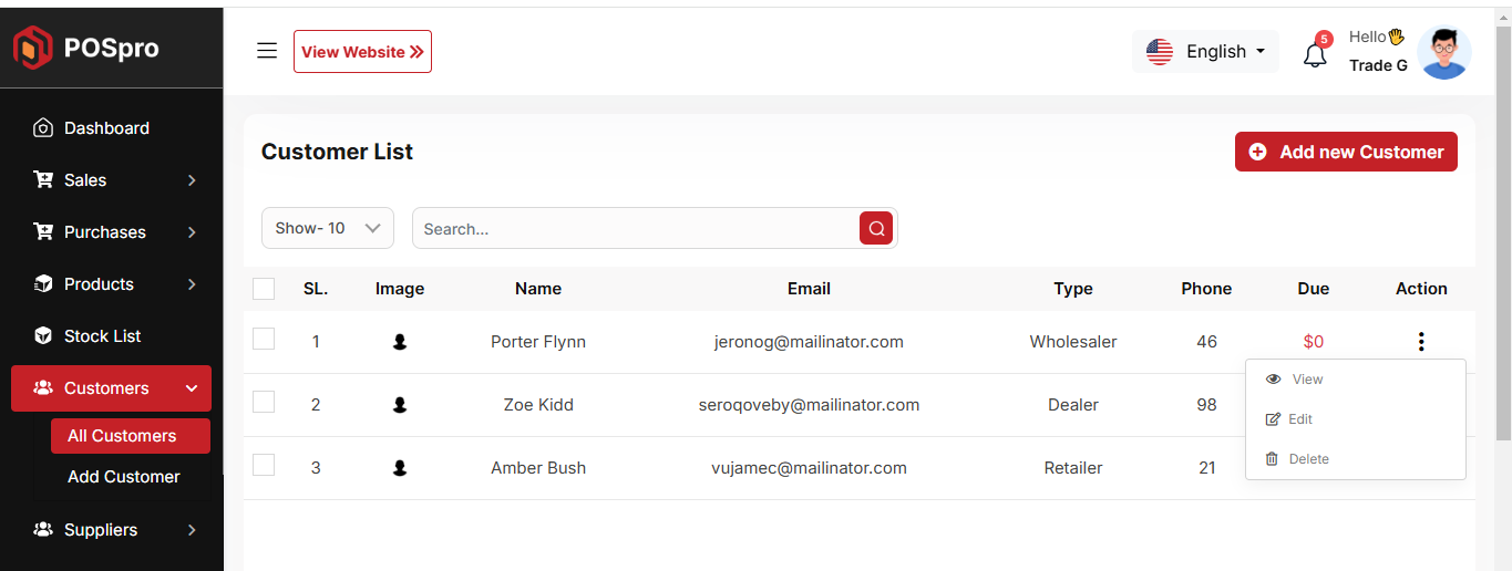 This appears to be a screenshot of a business list page. Business list functionalities typically allow users to collect and organize information about businesses. By clicking the "View" button, you can see the details of each business. You can also create a new business by clicking the "Add New Business" button. Below, we'll describe how you can create a new business.