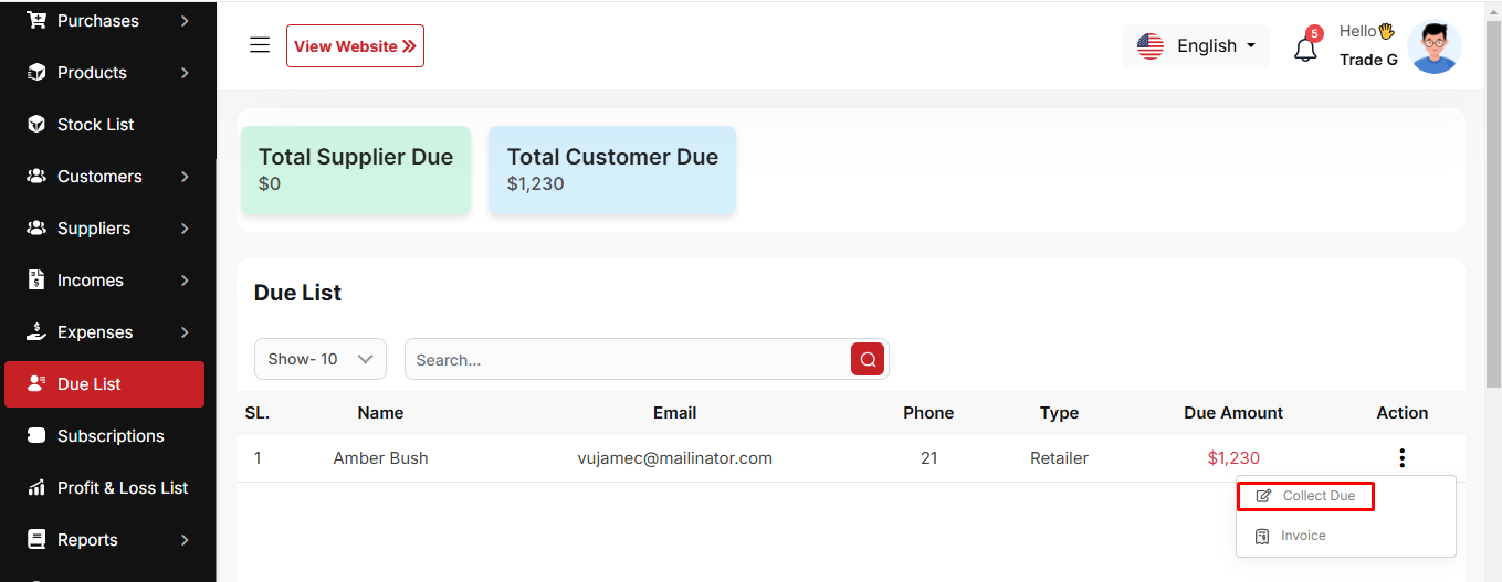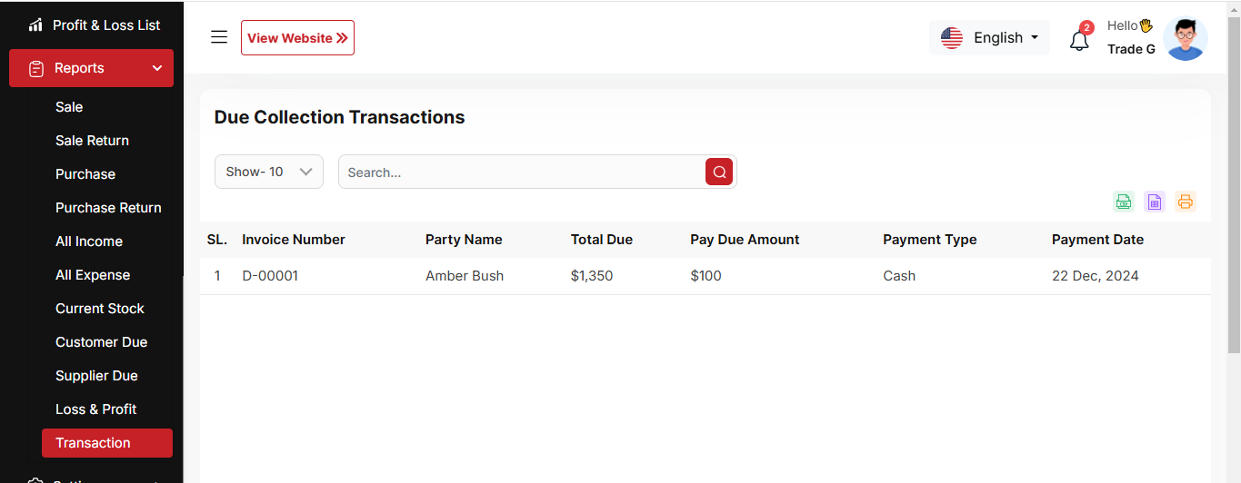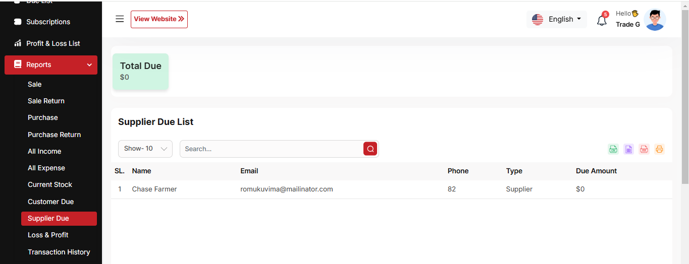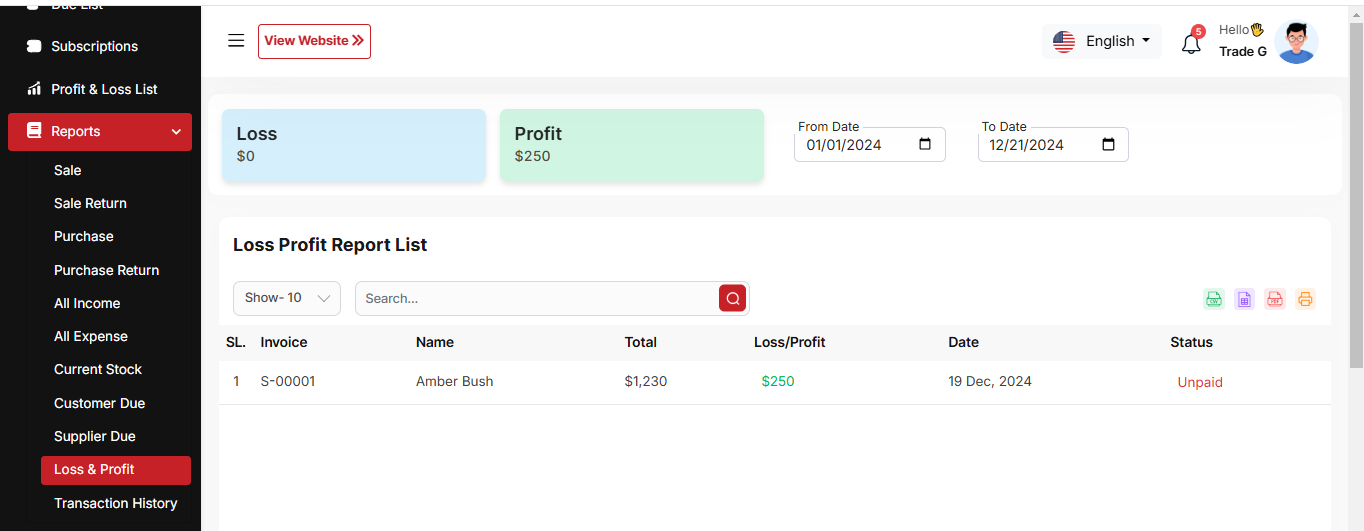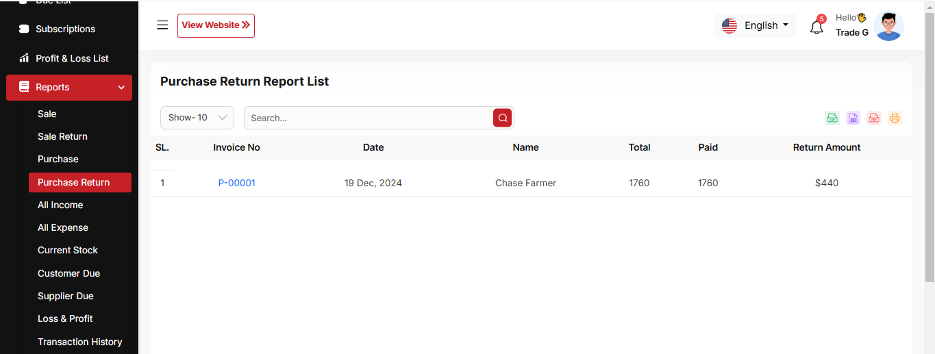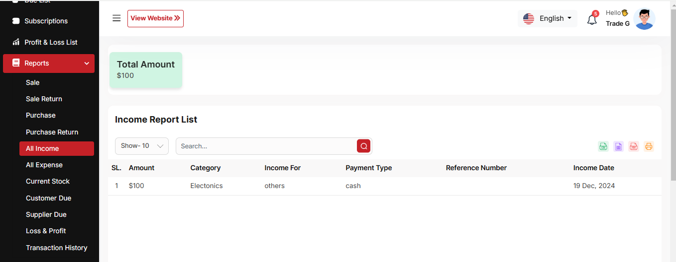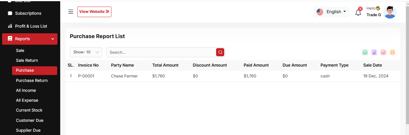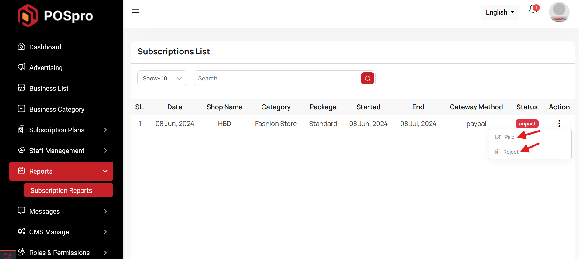The Subscription reports section allows users to track their current subscriptions.In the action column, clicking on the three dots (...) will display options to mark as "Paid" or "Reject." Clicking either option will allow you to change the status accordingly.