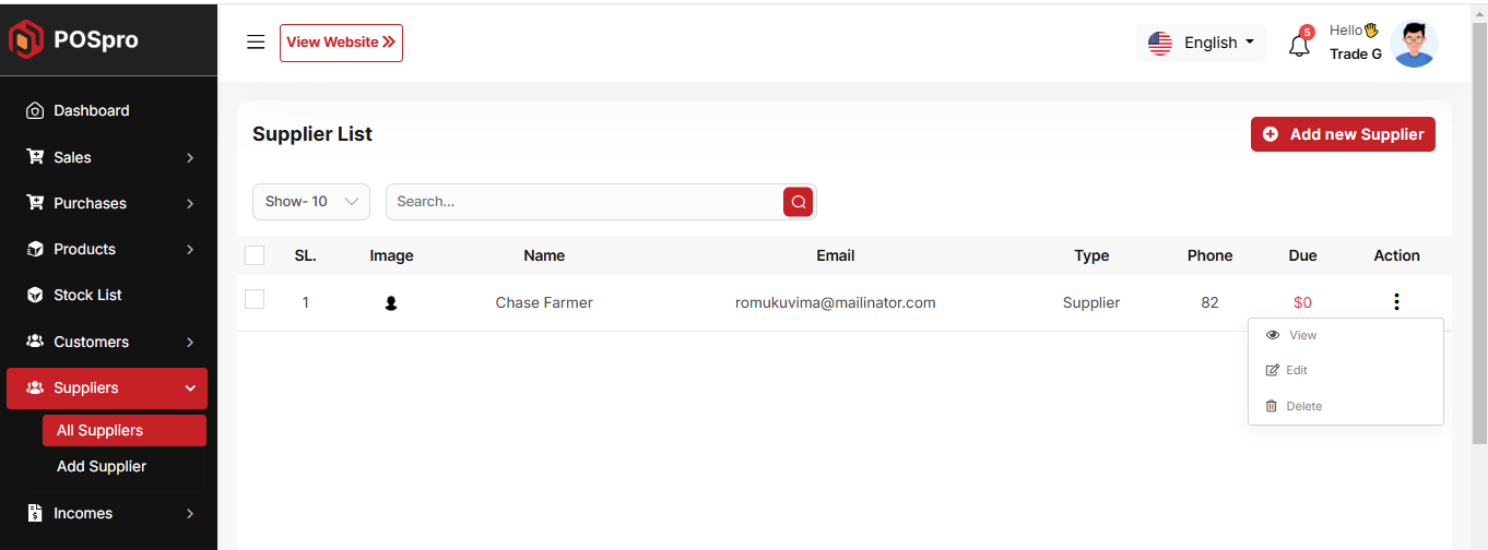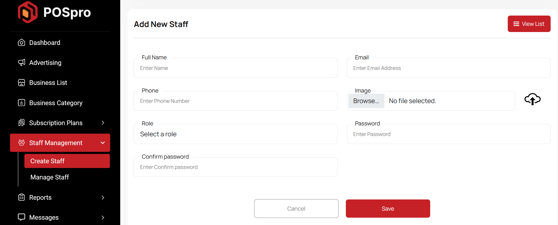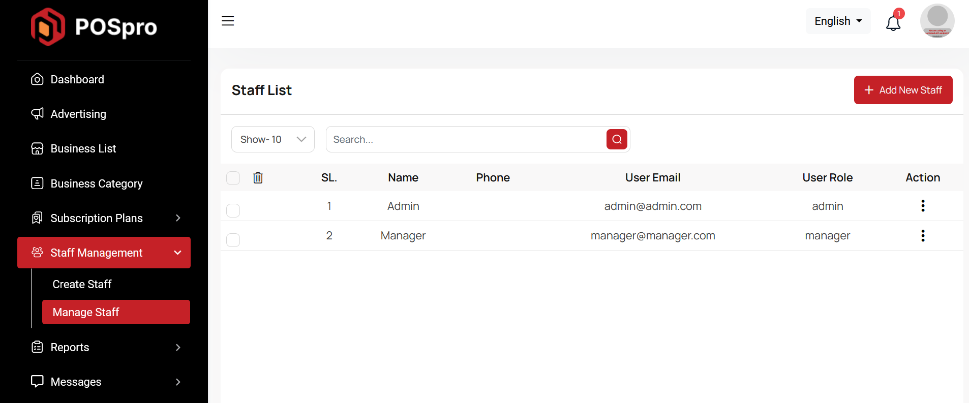 Here, you can view the list of staff members along with a search filter. Additionally, you have the option to edit, delete individual entries, and perform multi-delete operations.