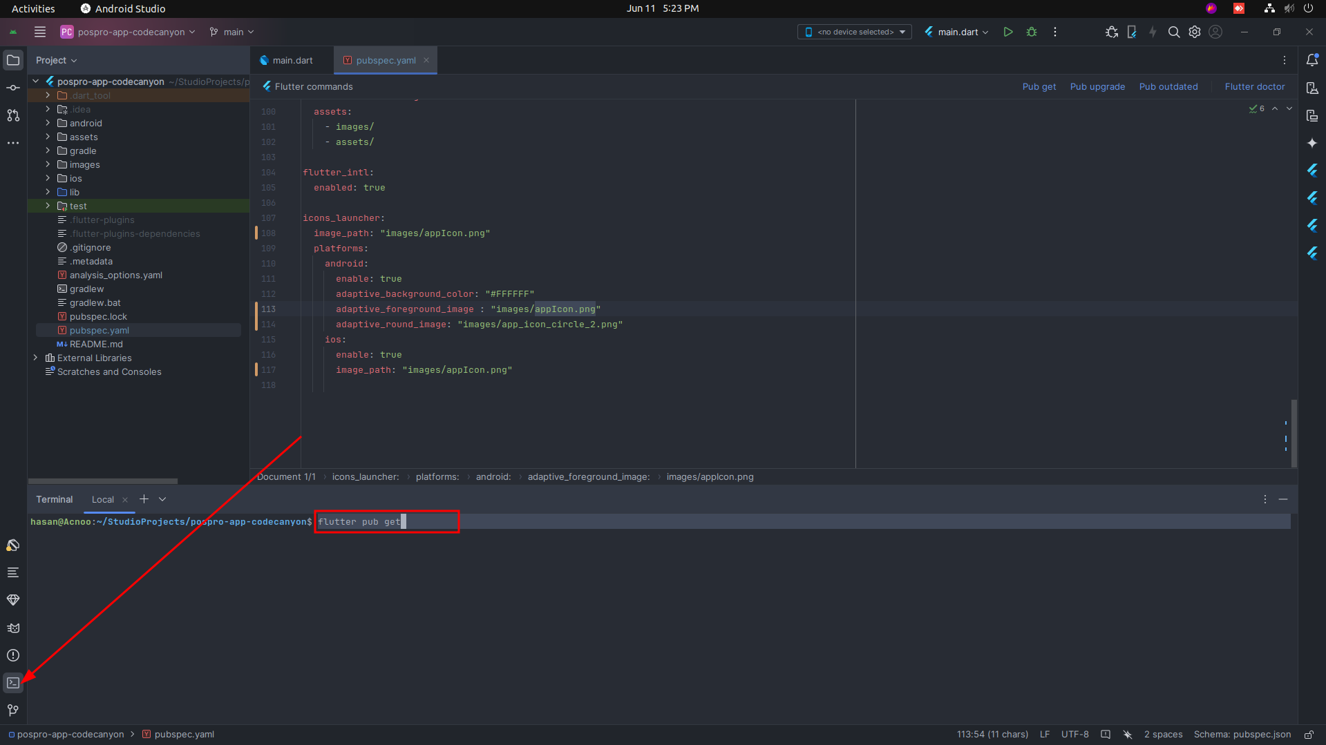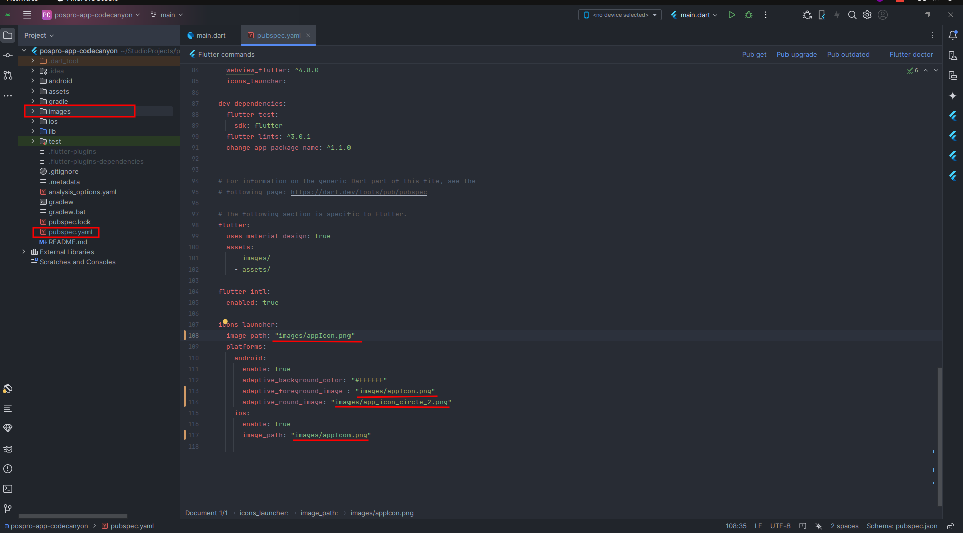 First of all open the "images" directory and import the image you want to make as icon. Then go to "pubspec.yaml" and replace the "appIcon.png" marked with red color with your icon which imported to images directory. Otherwise first rename your icon as "appIcon.png" and then import it to the images directory.