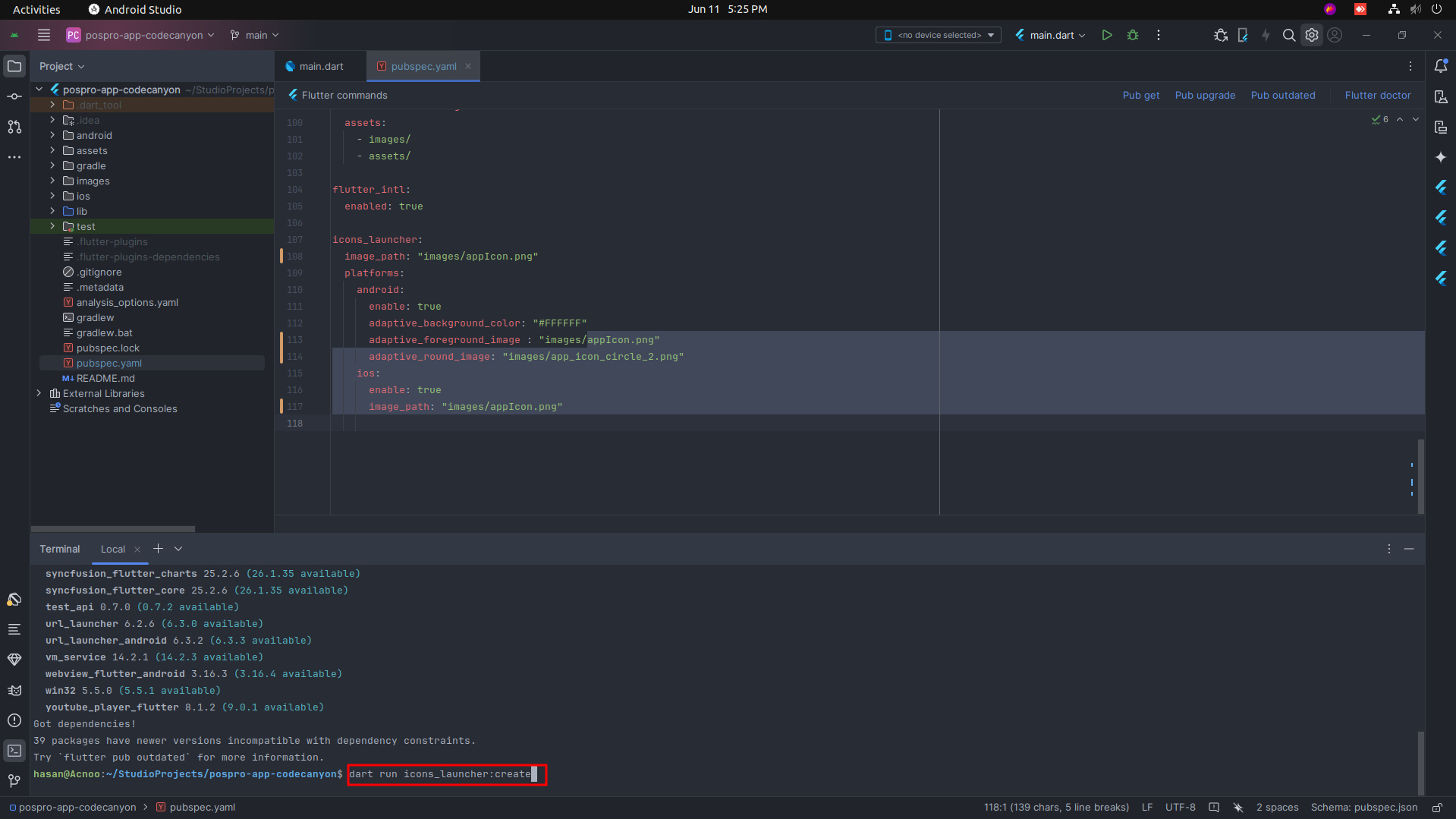 Again type "dart run icons_launcher:create" and press enter. It will change the app icon.