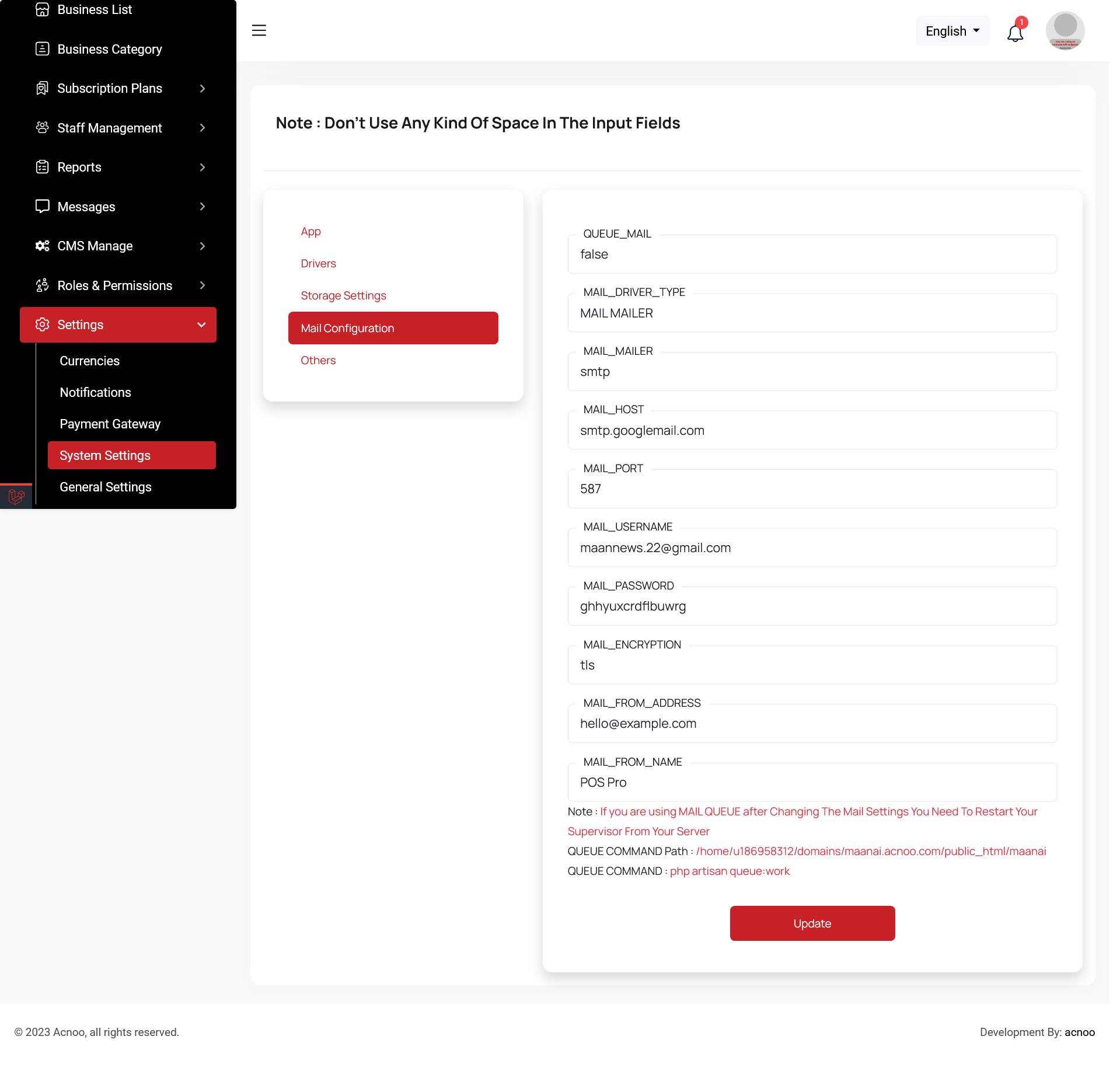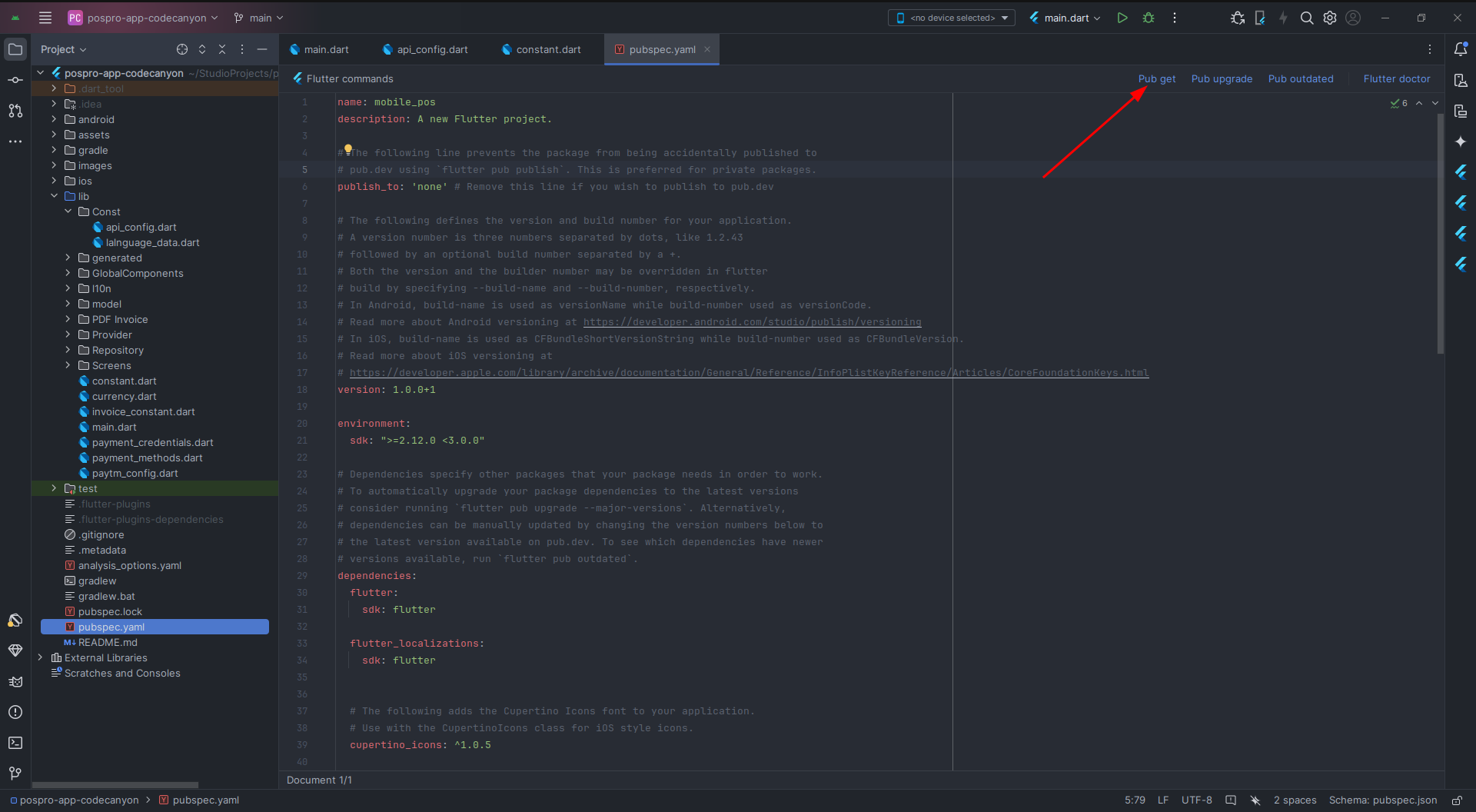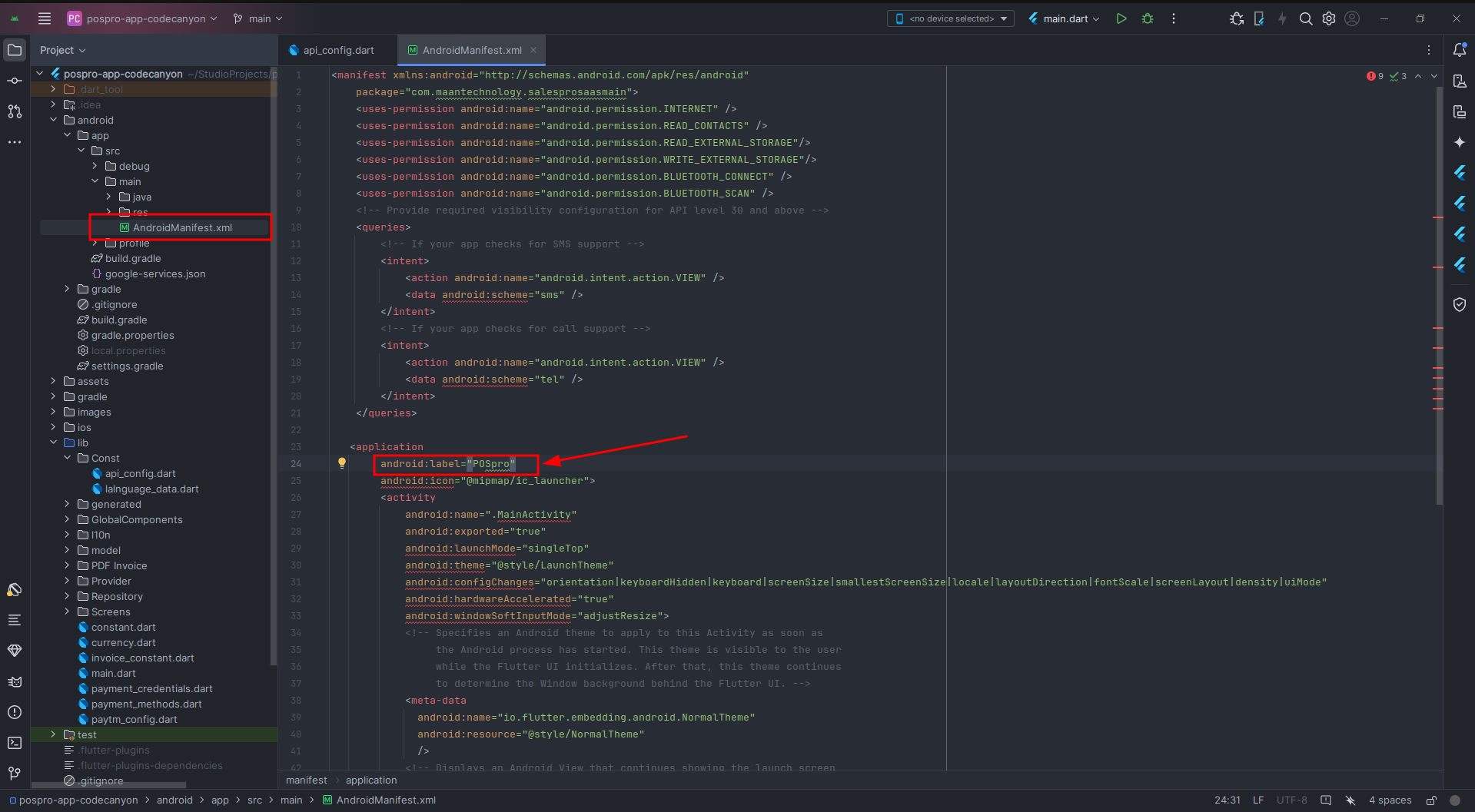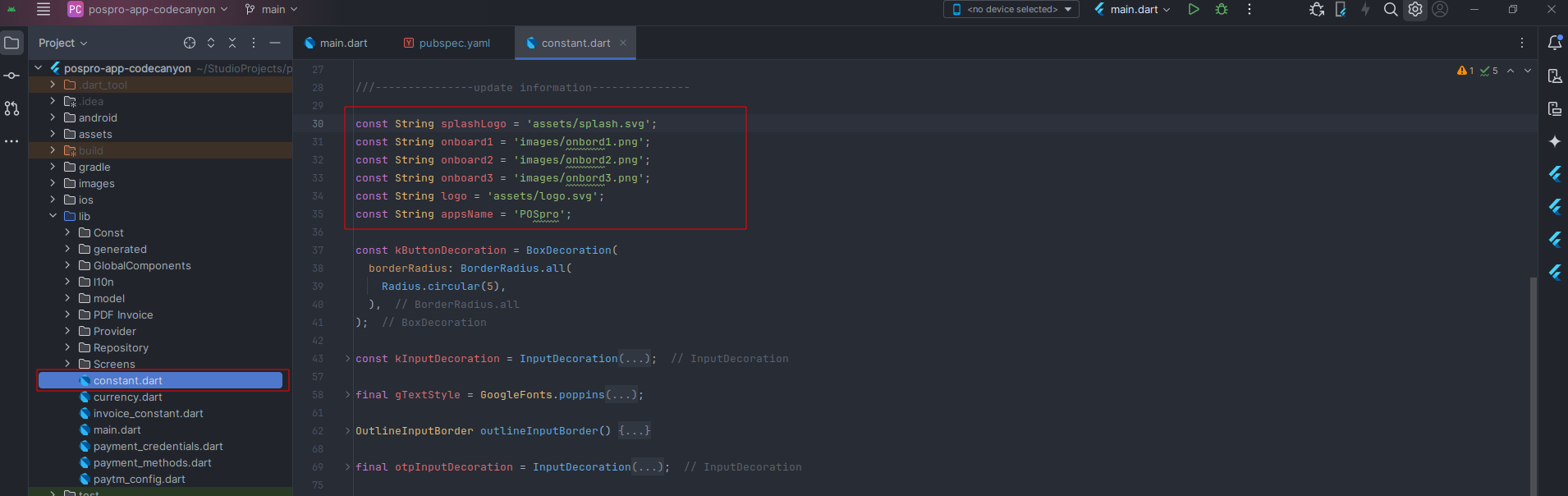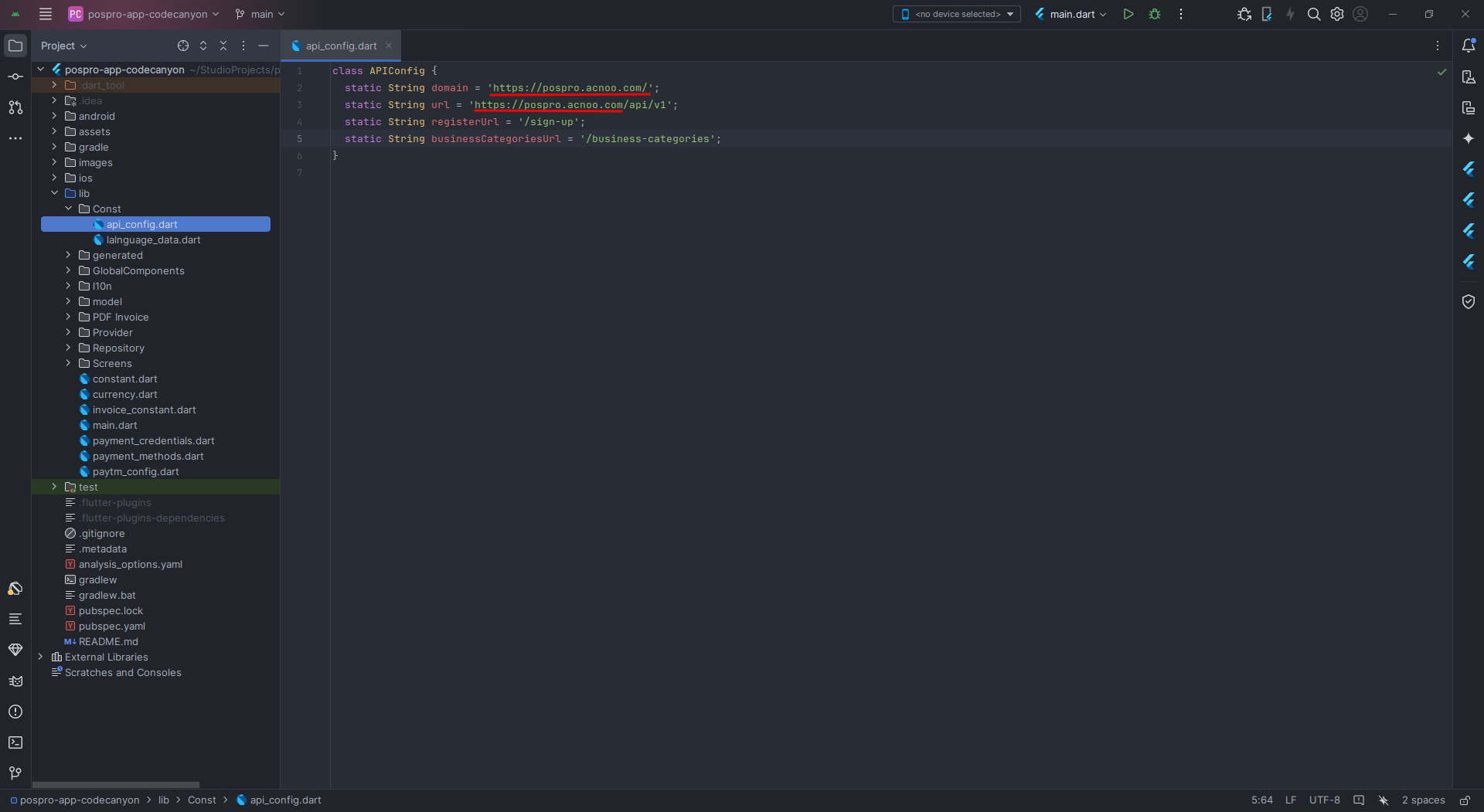 Then go to lib > Const > api_config.dart and replace the domain & url with your domain and url.Keep in mind here you have to change just the base url (https://pospro.acnoo.com). Just replace your base URL instead of https://pospro.acnoo.com or others.