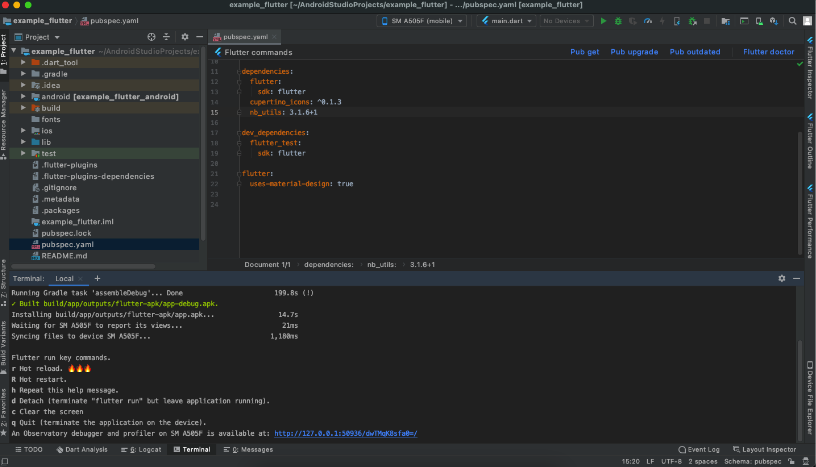 - Pubspec.yaml: Application name and other project dependencies can be found here