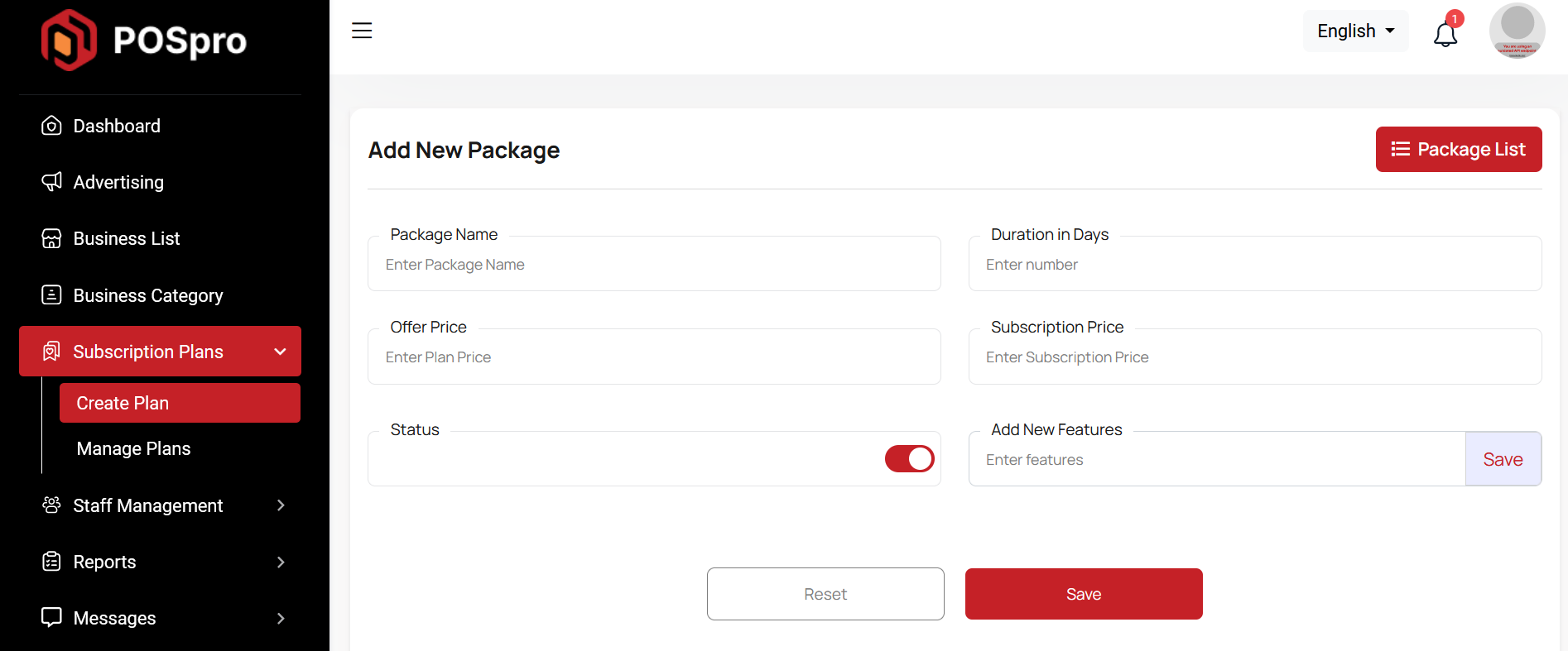 Here, you have the option to create a plan according to your preferences. You can also add multiple features using the "Add New Feature" input field. Once you have completed filling out the form, simply click the "Save" button.