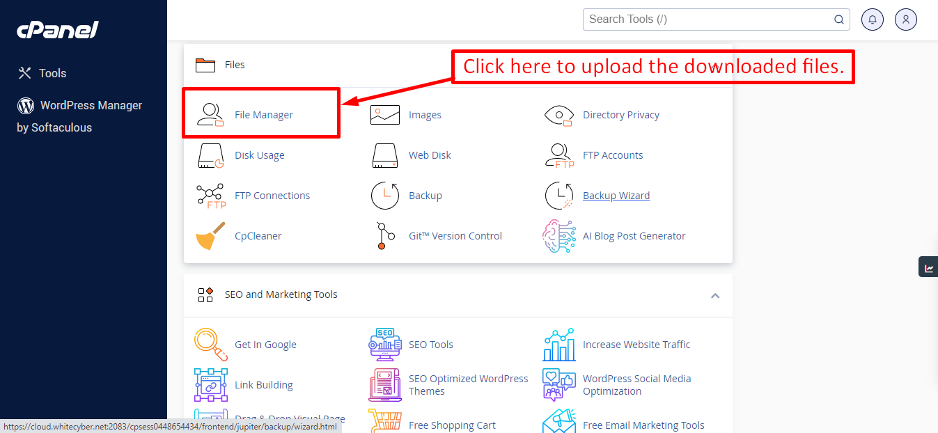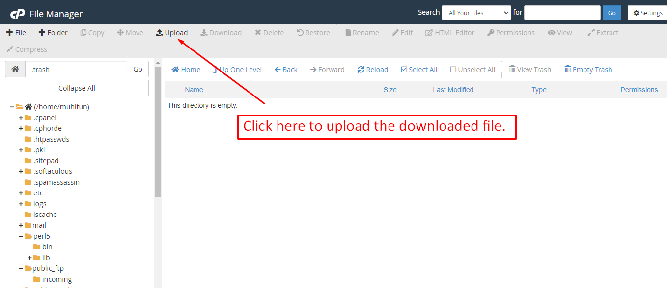 After creating a database, Upload the Super-Admin.zip file on the web root folder of your domain. This folder is generally called public_html, html, or example.com, but depending on your server's configuration, it might be named differently.