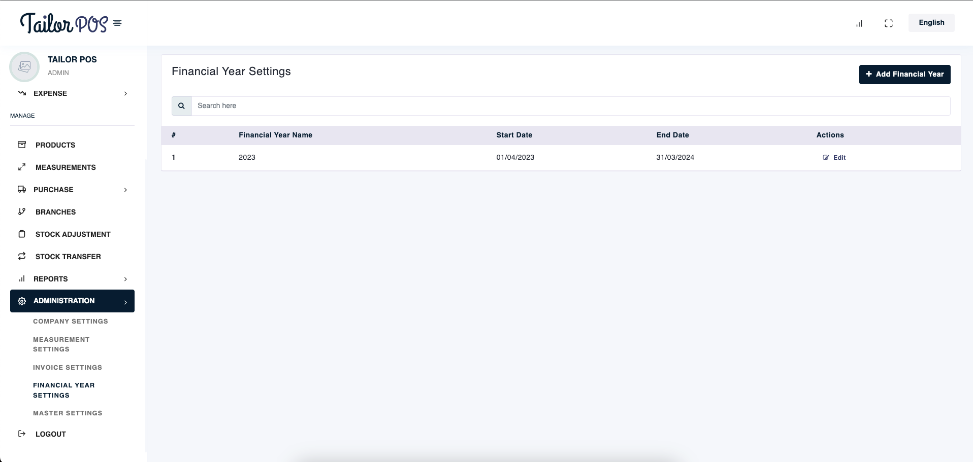 Click on Add A New Financial Year and create a new financial year by filling the provided information.