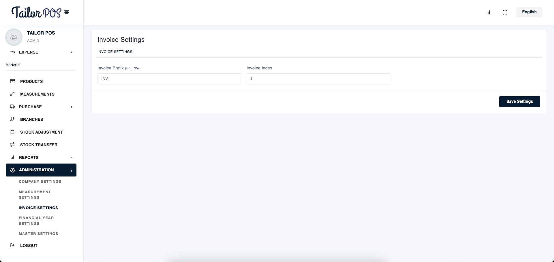 In the Invoice Prefix input type in your required prefix for your invoices.The invoice prefix must end with '-' and only one '-' must be present.