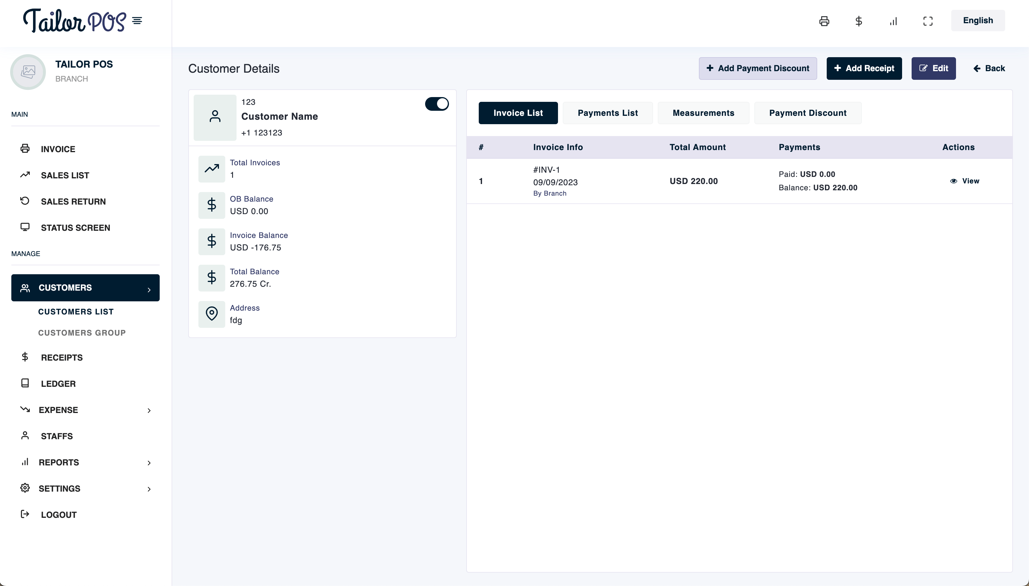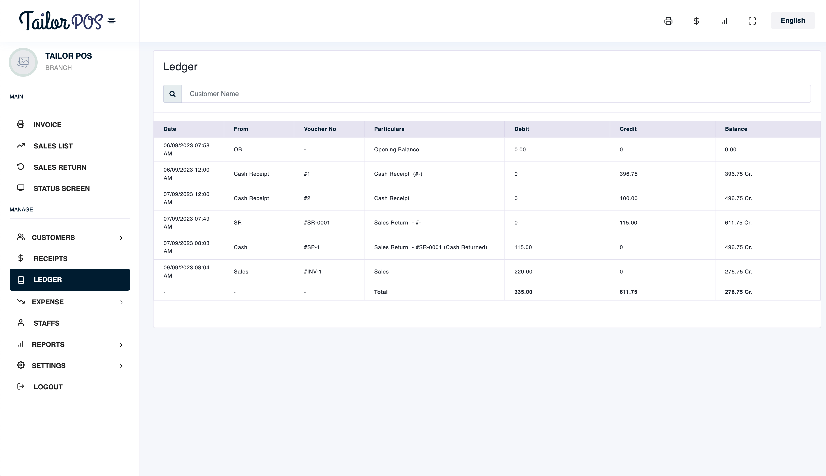 - Every sale and payment added towards a customer reflects in the customer ledger.