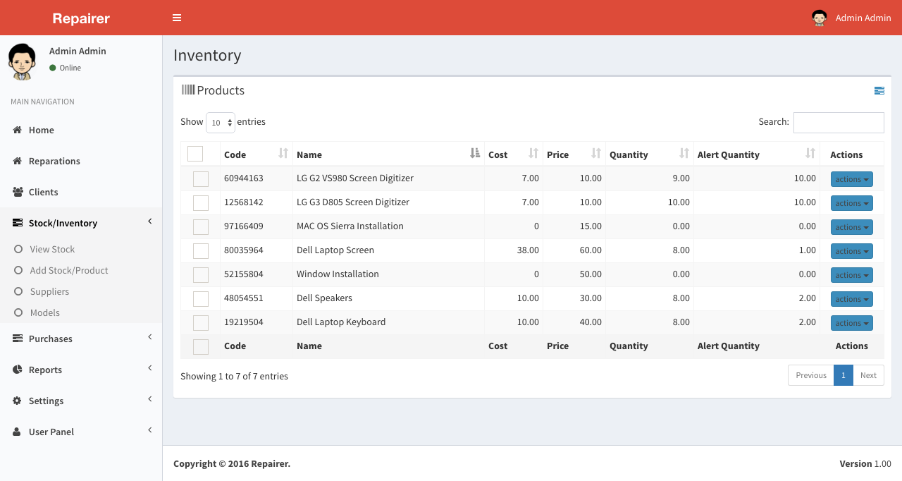 Repairer - Repair/Workshop Management System is carefully developed for easy management of any type of repairshop/workshop. It's actually an innovative, simple and powerful management tool, designed and developed for you. It’s just your trusty employee. It’s a web based system where you can manage reparations, clients, inventory, purchases etc.